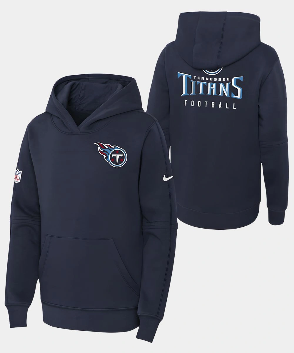 Make every game day feel like your moment with this Navy Blue Titans Nike Sideline Hoodie. A classic collectable that gives you dependable warmth and style that stands out everywhere you go. Constructed from heavyweight fleece that feels plush and ideal for cold weather. It features a roomy hood that adds coverage and comfort to you style. Ribbing on the cuffs and hem ensures the fit looks sturdy yet cosy.Â