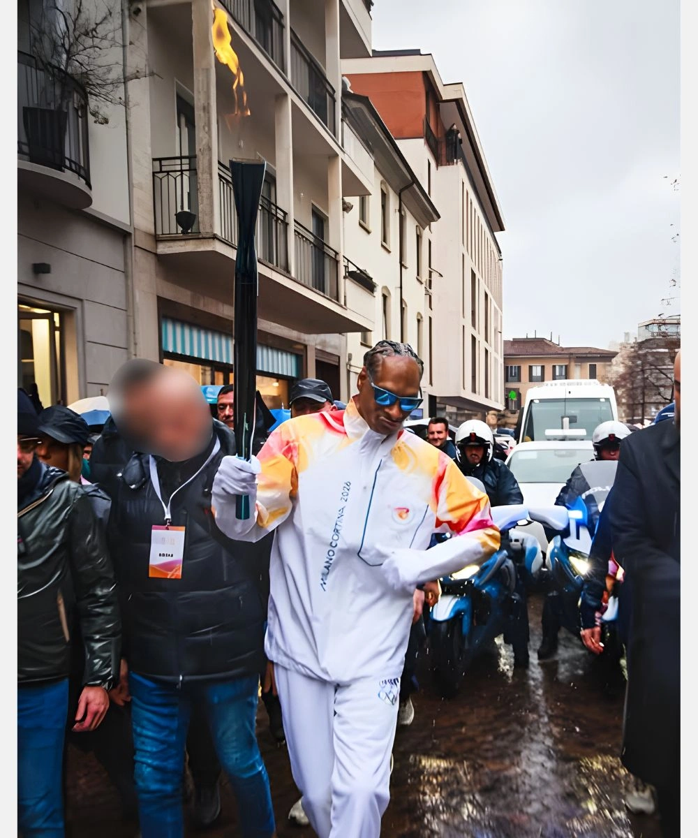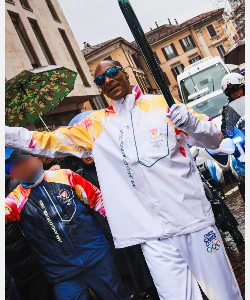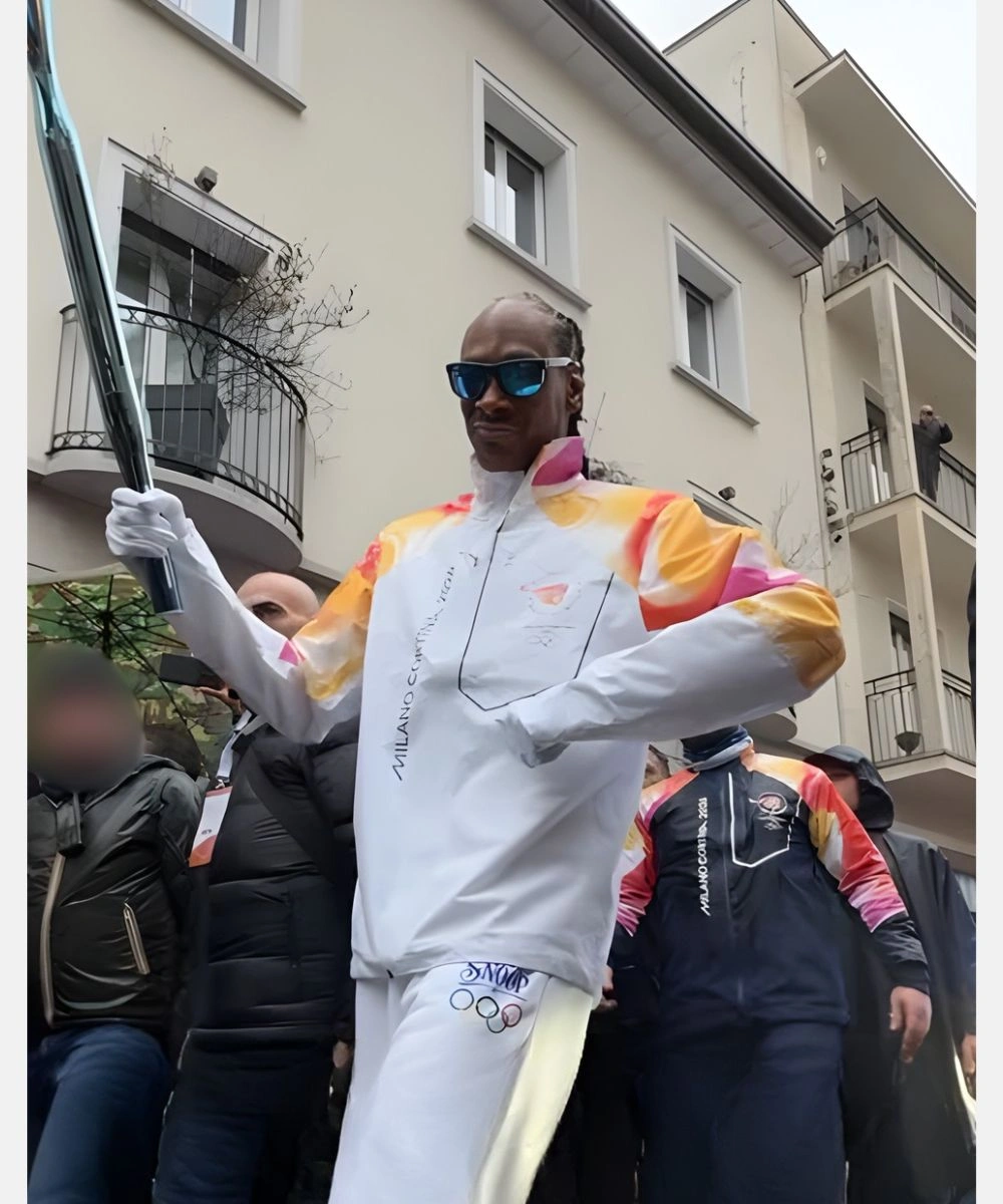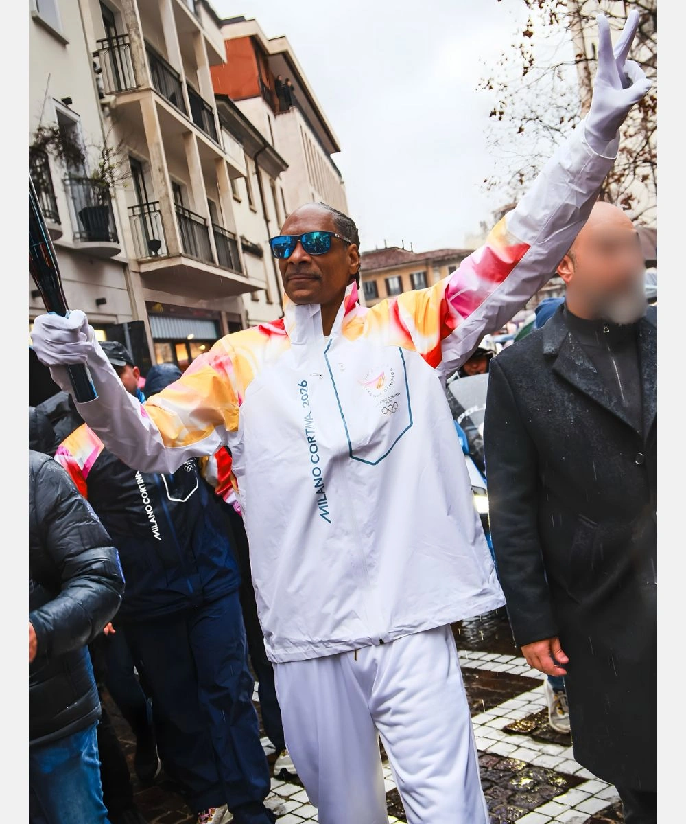 American Rapper Snoop Dogg Olympic Winter Games 2026 Milano Cortina Torchbearer White Jacket