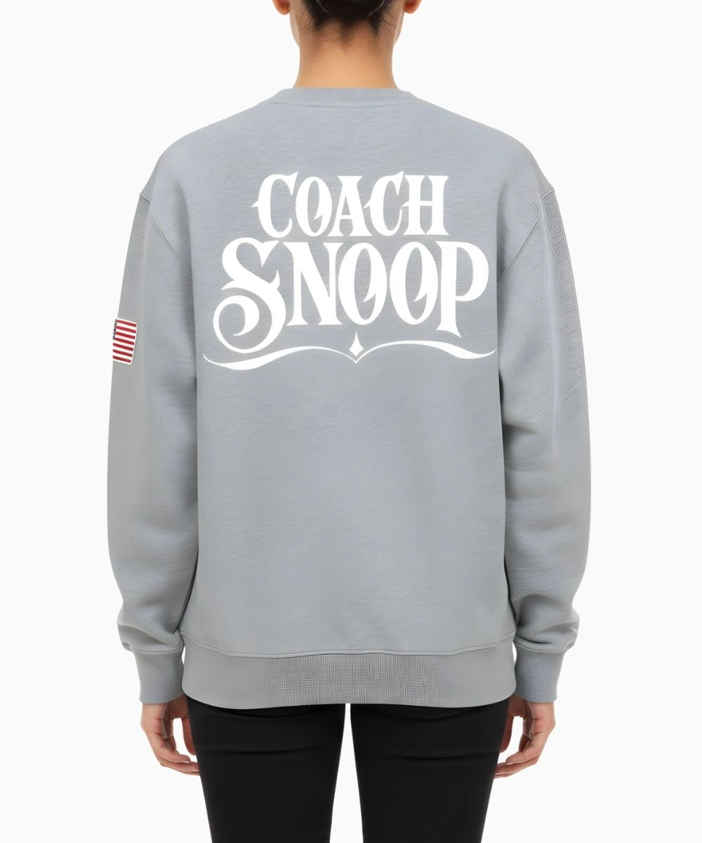 Constructed from quality, heavy-duty fleece that offers a quality feel with no compromise on structure. Designed in heather grey, the pullover features a sleek pullover neck collar for extra coverage and practical rib-knitted cuffs to keep it all snug. It’s characterized by a high-contrast graphic, including the iconic Team USA branding across the chest. A signature tag patch at the ribbed hem adds vintage sportswear vibes, while “Coach Snoop” branded elements are infused at the back for effortless cool.