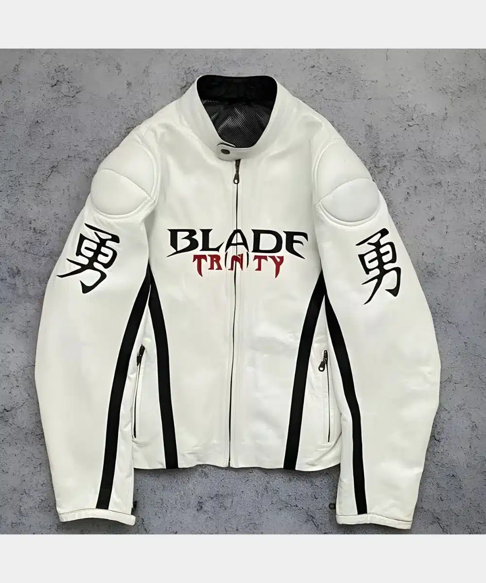 A round snap buttoned collar and shoulder padding give a structured fit and a street-ready edge. It has a front zip closure for a clean look and ensures secure closure. The Monday Night RAW Pete Davidson Leather Jacket has a striking Blade Trinity logo at the front and back for an iconic touch. The structured cut sits well on the body and the buttoned cuffs add a neat look. It also has side zip pockets to enhance the edge and practicality of your style. The timeless design ensures it fits many occasions and works with multiple outfits.