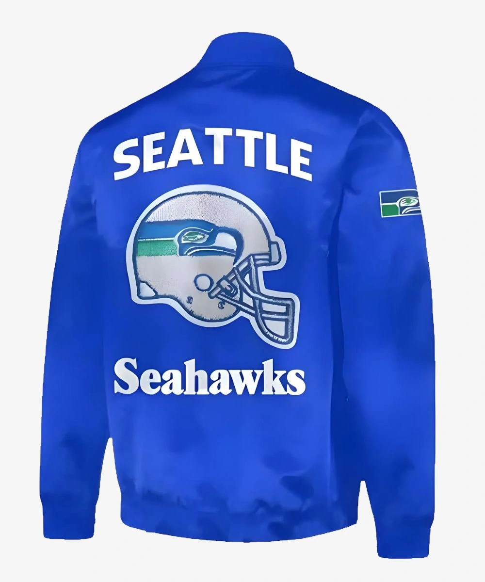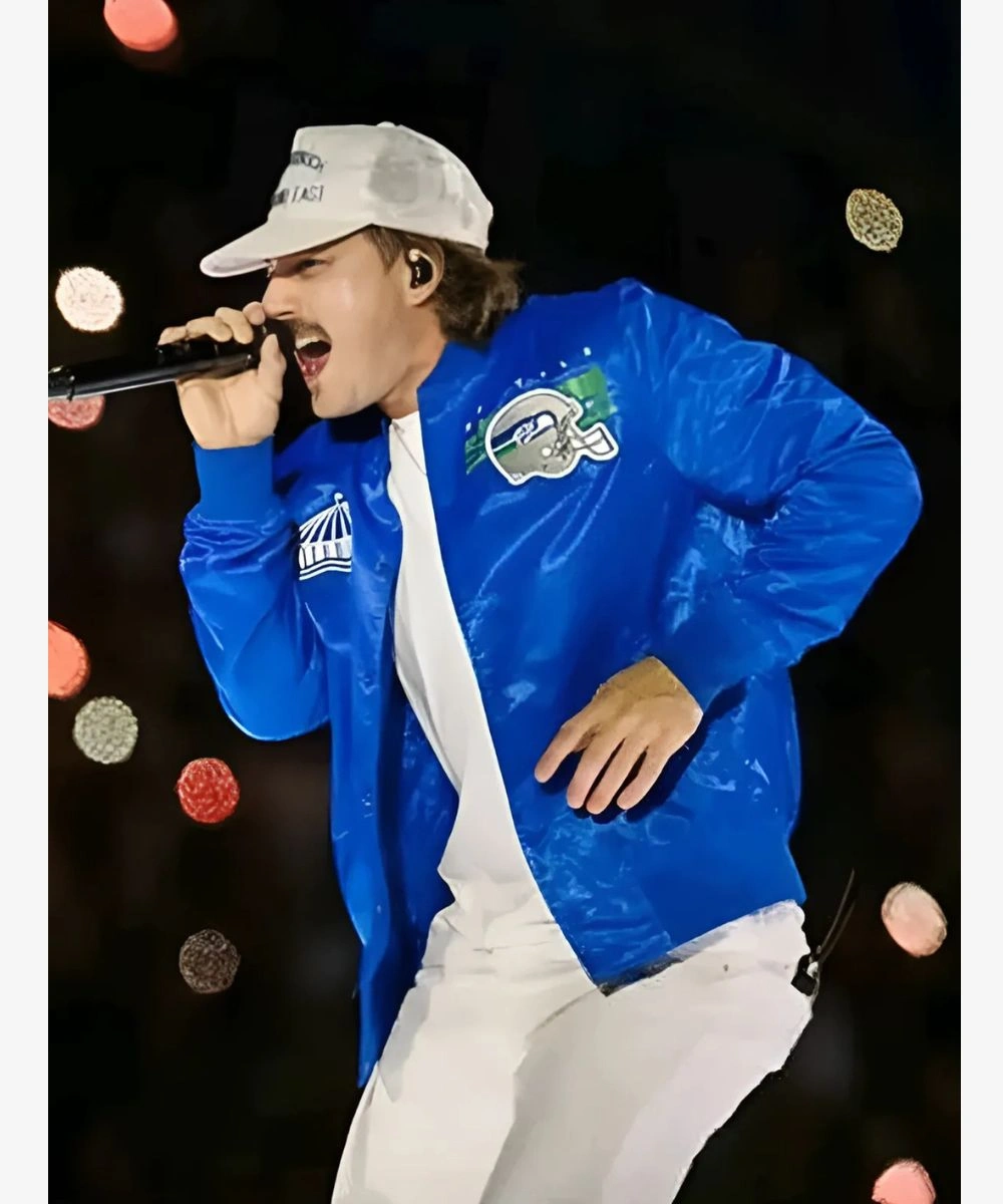 The Morgan Wallen Seattle Seahawks Satin Blue Bomber Jacket is perfect for game days or everyday style. It adds a fan energy to every outfit, and the relaxed fit allows easy layering. The front displays a Seahawks helmet and “SEATTLE’ lettering graphics for loyalty and game day identity. Ribbed cuffs and hemline offer a snug fit that moves with you—making it ideal for layering over tees or hoodies.Â