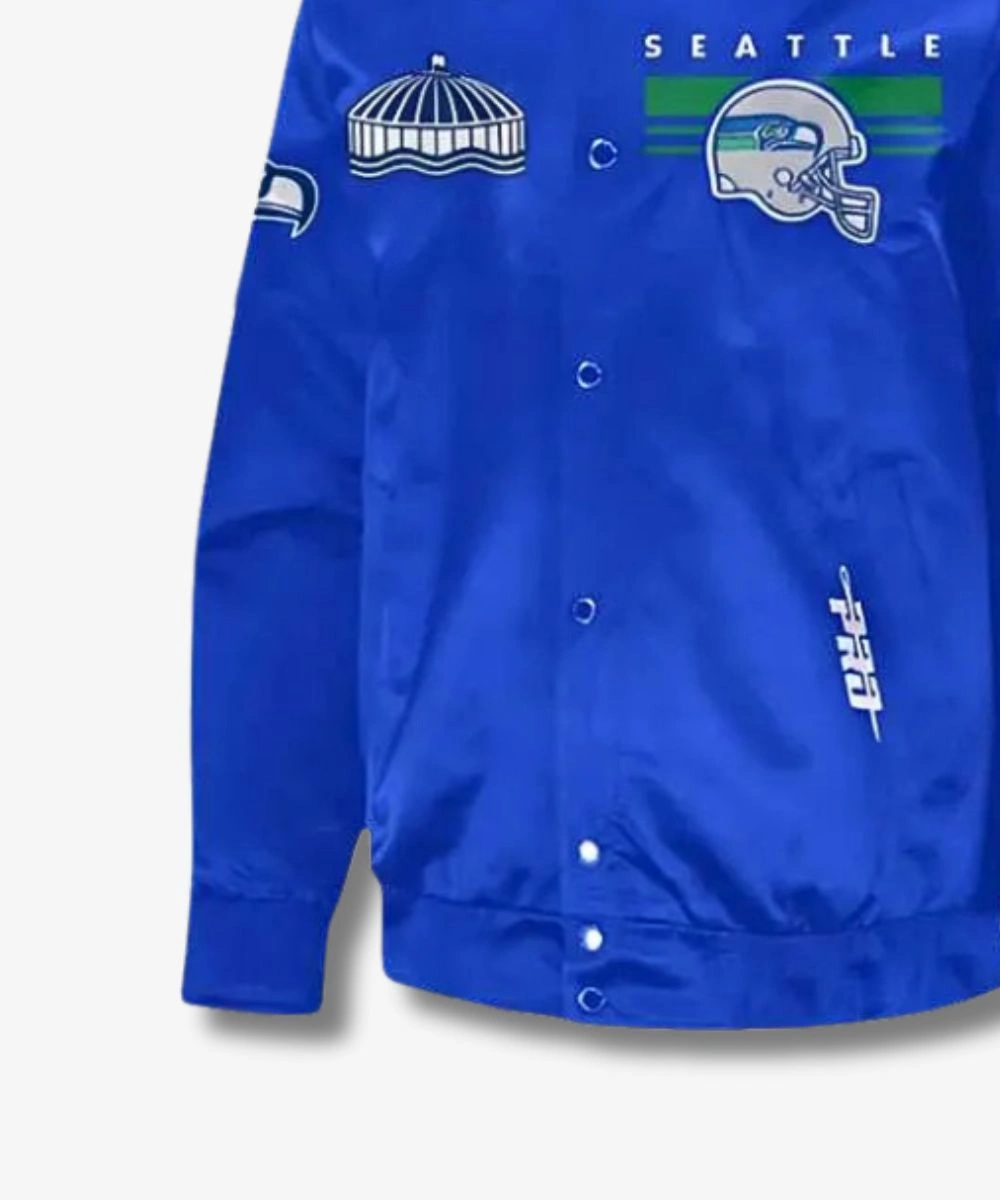 Step into game-winning style and unmatched swagger in the Morgan Wallen Seattle Seahawks Bomber Jacket. Made from premium satin, the smooth fabric instantly adds a fresh, athletic edge. Its bold blue satin finish represents the Seahawks’ pride, while the interior lining gives a soft and cosy feel. Designed for ease and flair, it features a ribbed collar and a snap-buttoned front. The flexible texture keeps your neck warm while the buttons glide smoothly, giving you a comfortable fit.Â