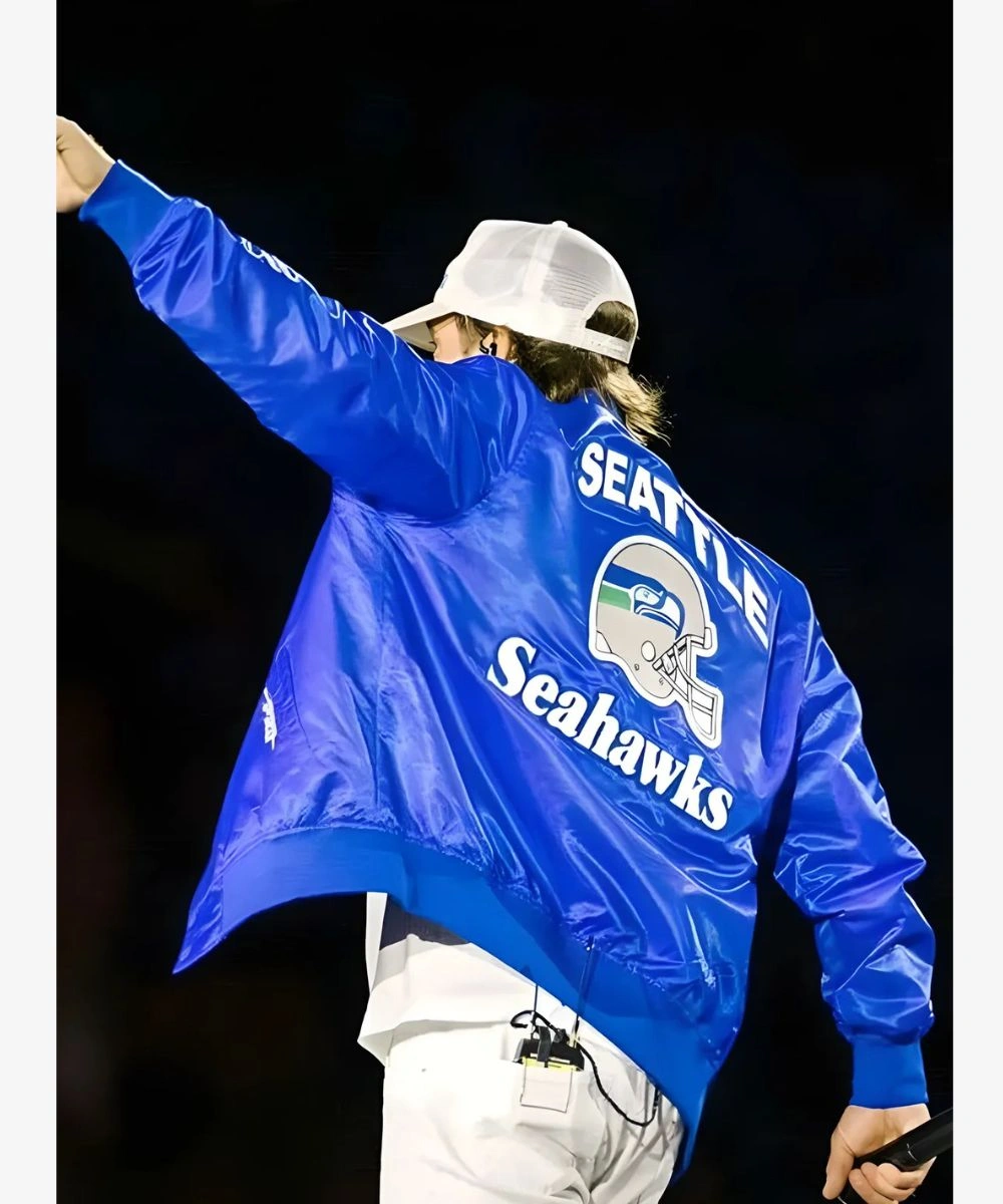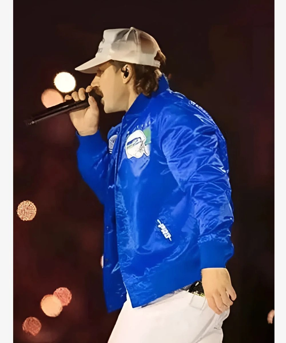 Shop Morgan Wallen Seattle Seahawks Satin Bomber Jacket – Blue