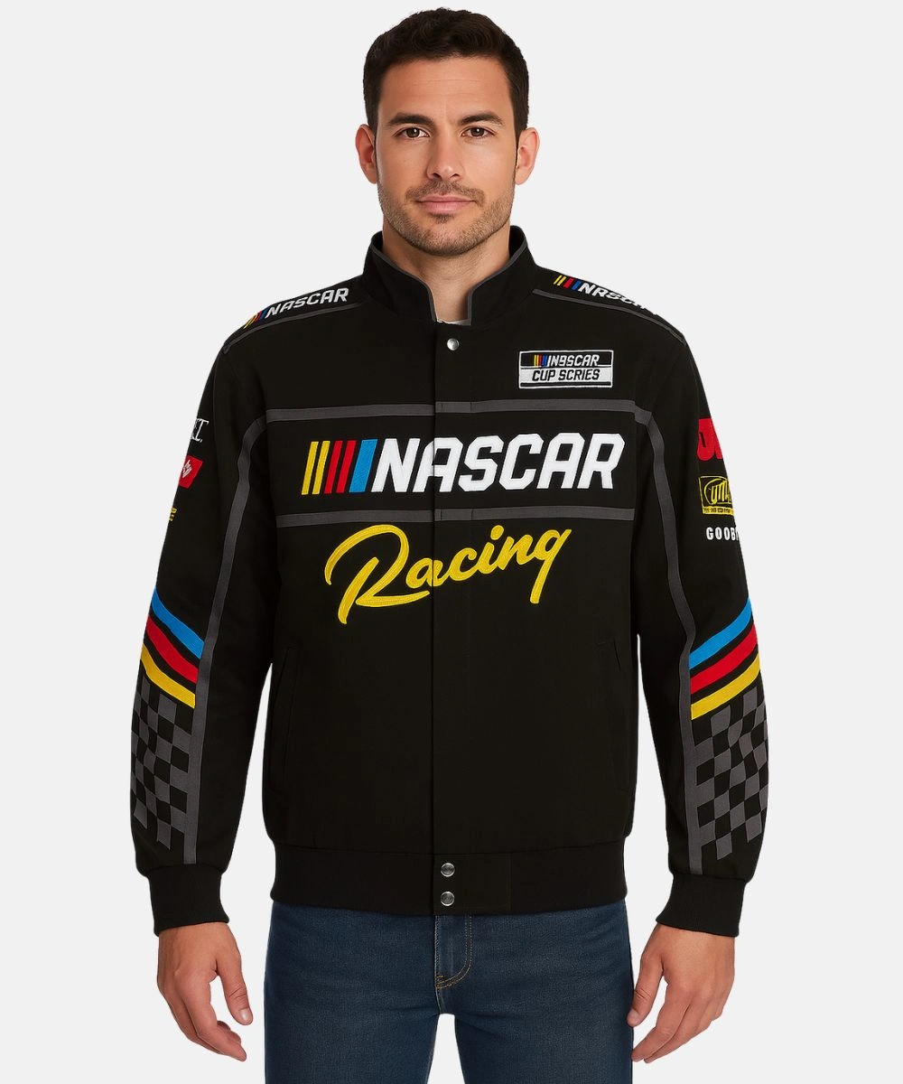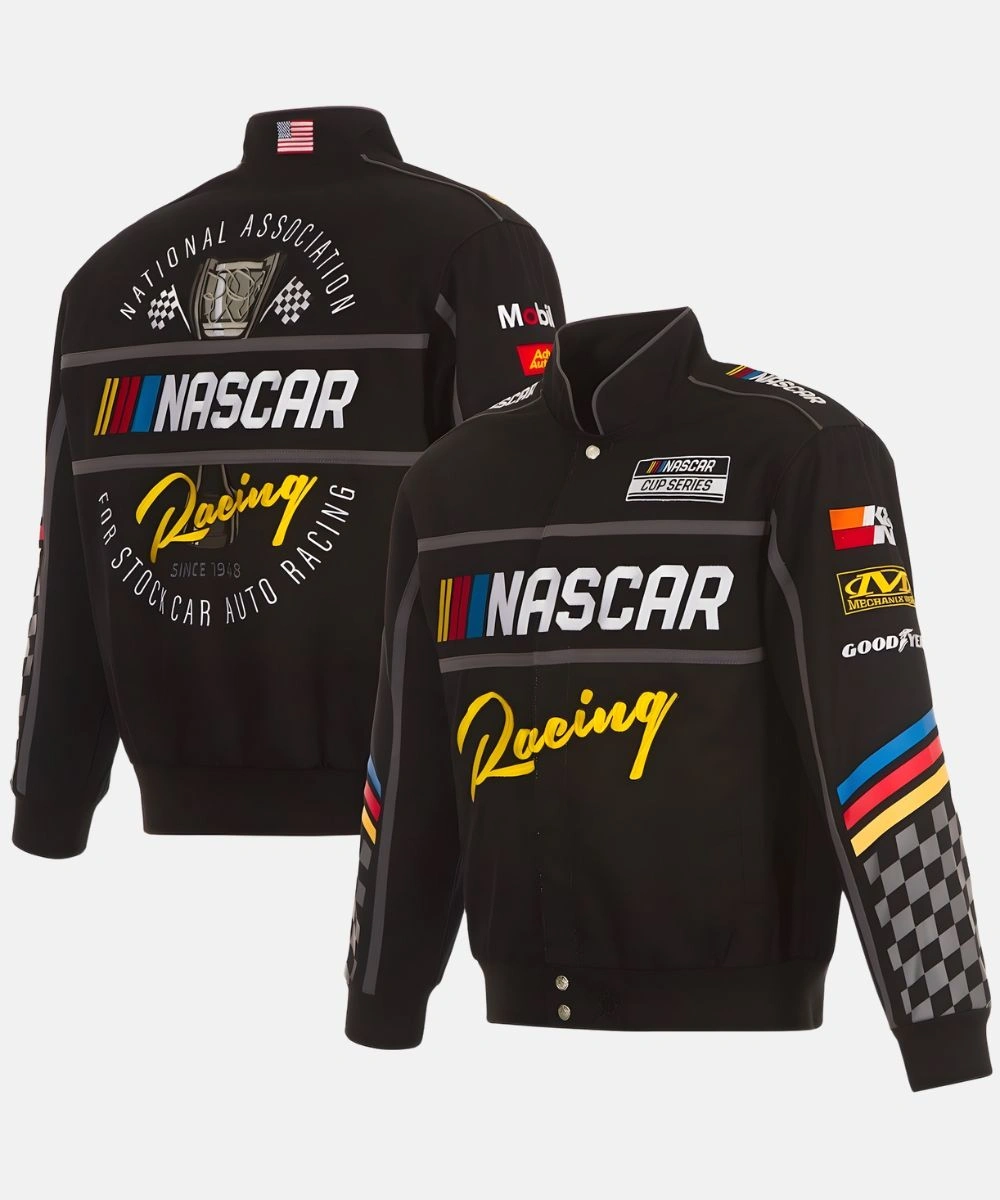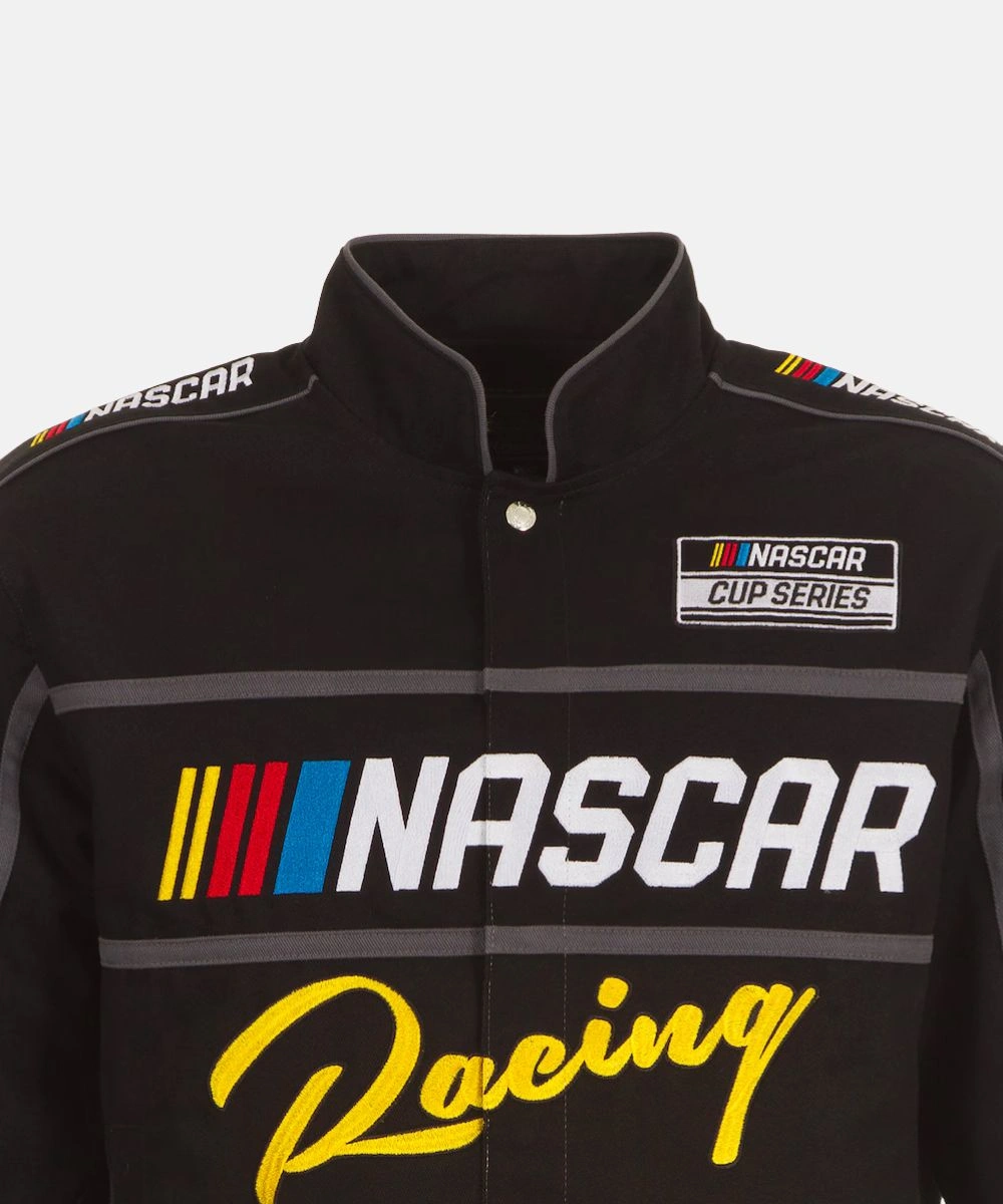 NASCAR JH Design Black Twill Driver Uniform Full-Snap Jacket For Men & Women