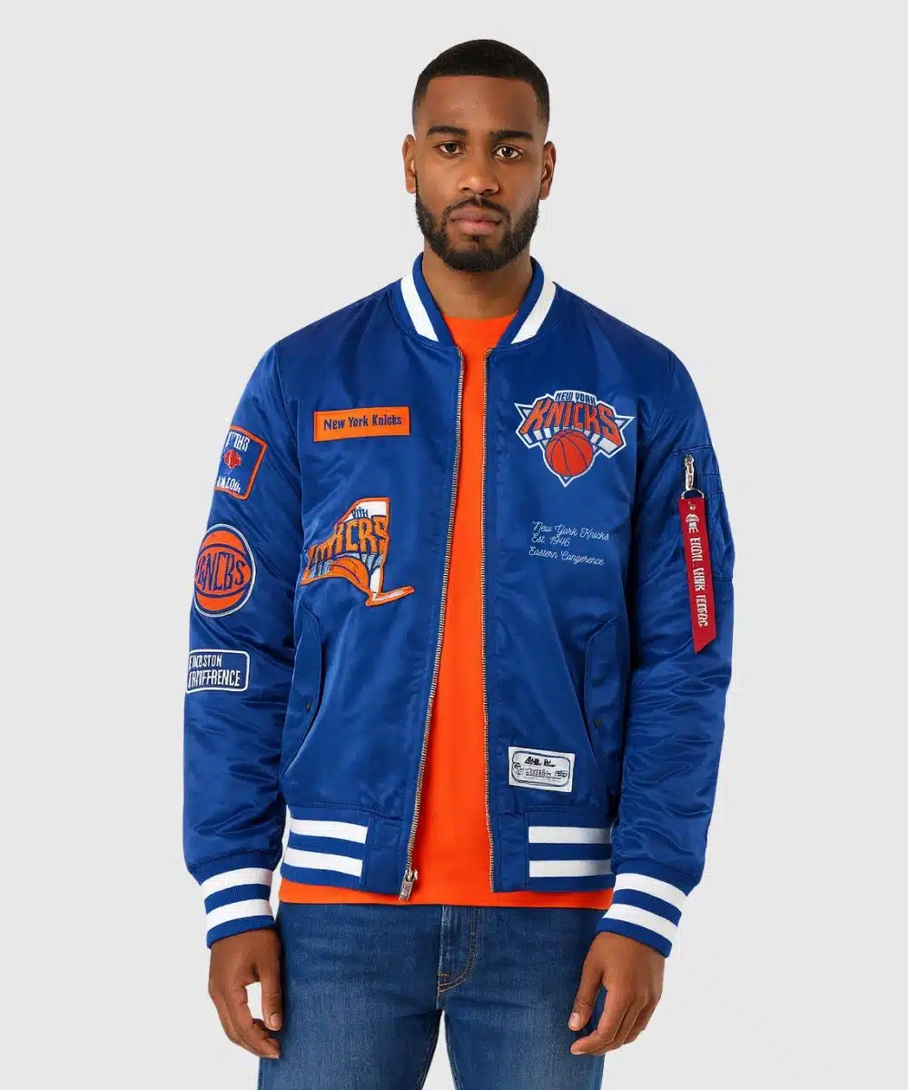 New York Knicks Alpha Industries MA-1 Blue Bomber Jacket For Men & Women