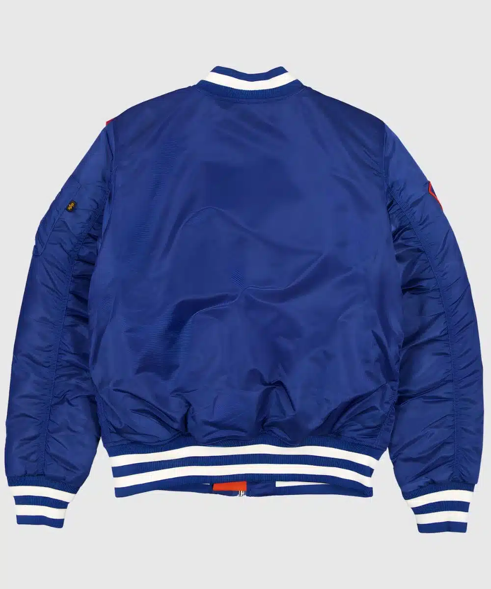 Step into Knicks pride with a timeless attitude and varsity style in this MA-1 Bomber Jacket. Crafted from quality polyester and a clean silhouette that gives a standout style. It has a front zip closure paired with a ribbed collar for an unmistakable bomber profile. The ribbed cuffs and hemlock maintain a sharp and structured style. Its sleek textured purls enhance your retain fit and give you a cosy fit. The Blue Bomber New York Knicks Alpha Industries MA-1 Jacket For Men & Women is perfect for those who prefer modern swagger style.