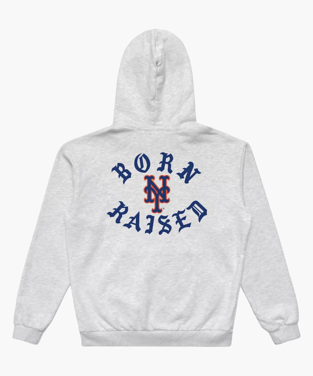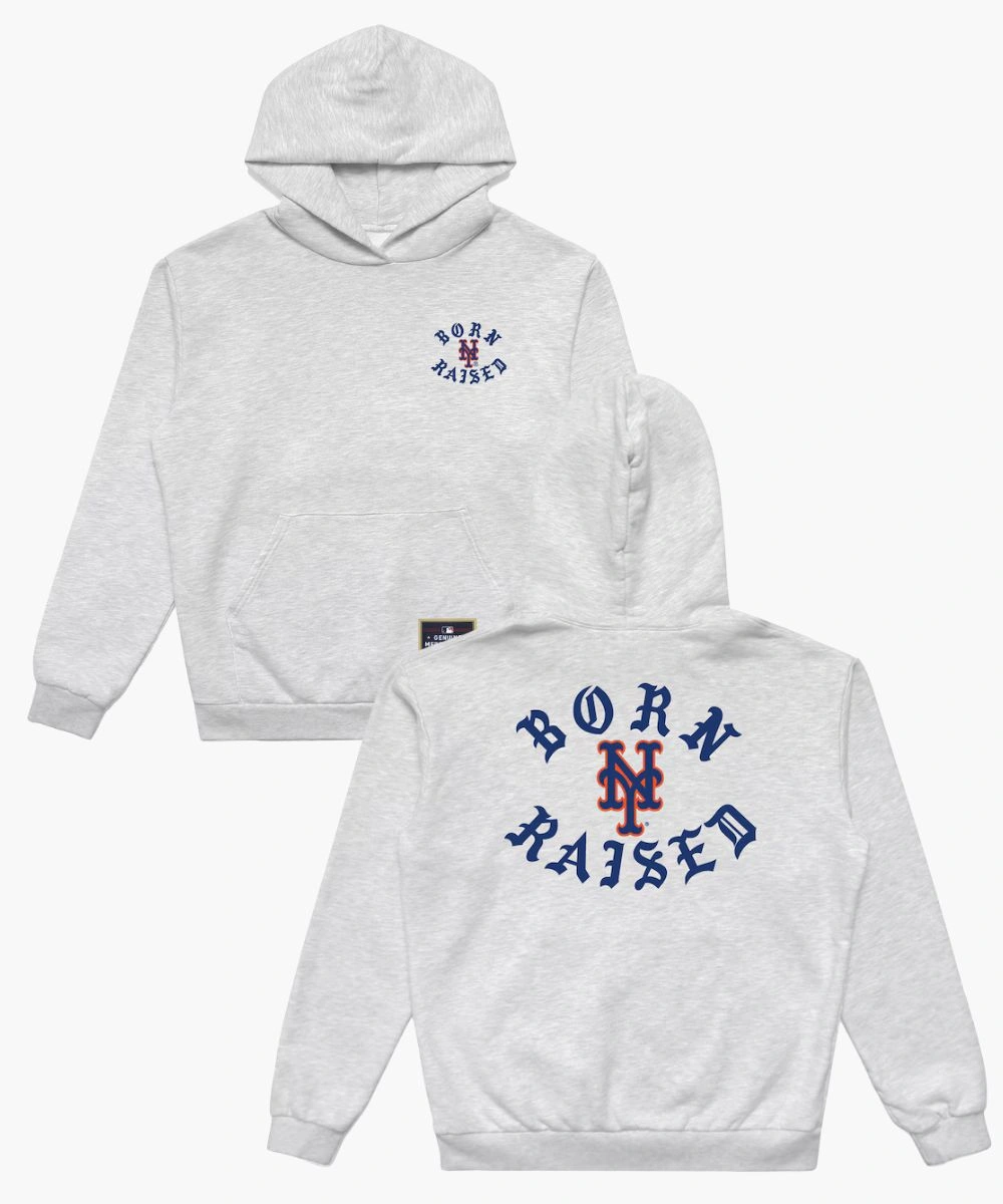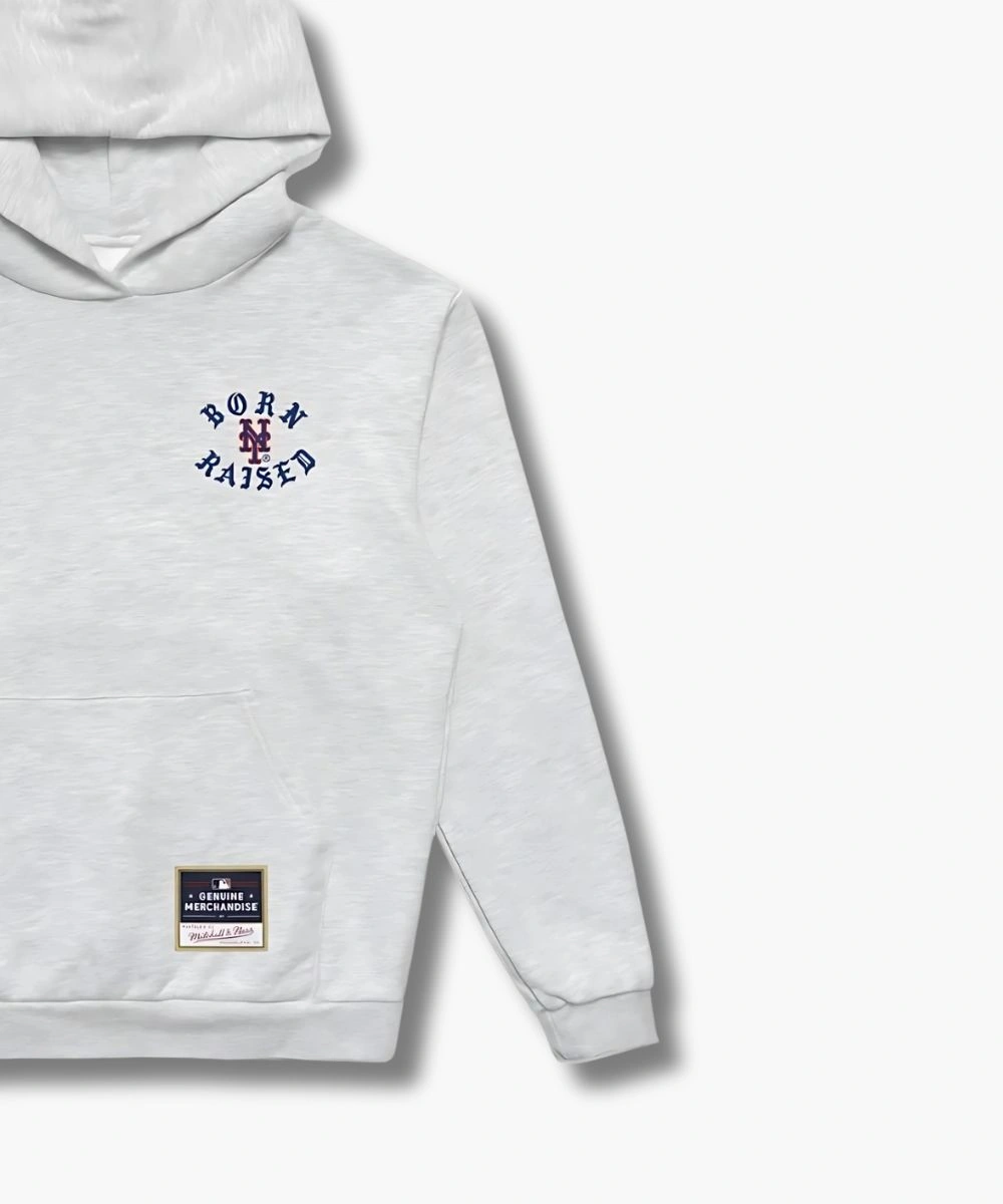 Show your New York grit with perfect street swagger in this New York Mets Mitchell & Ness x Born x Raised Hoodie. Built for cold nights and timeless loyalty, it delivers standout style on and off the field. It’s rich and soft fleece proudly displays Mets branding paired with “Born x Raised” and New York for fan loyalty with a fashion-forward edge. The midweight design is excellent for cold to moderate temperatures.