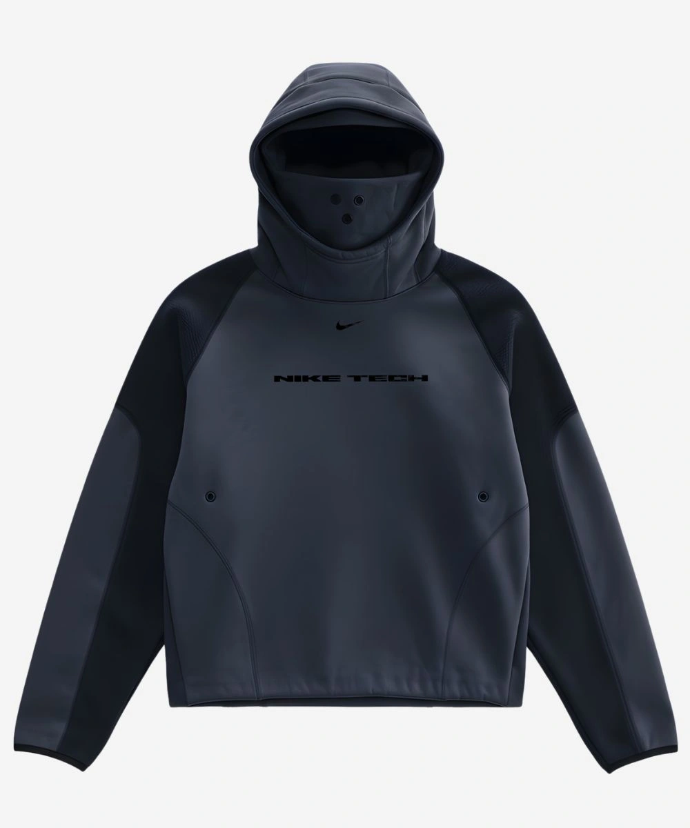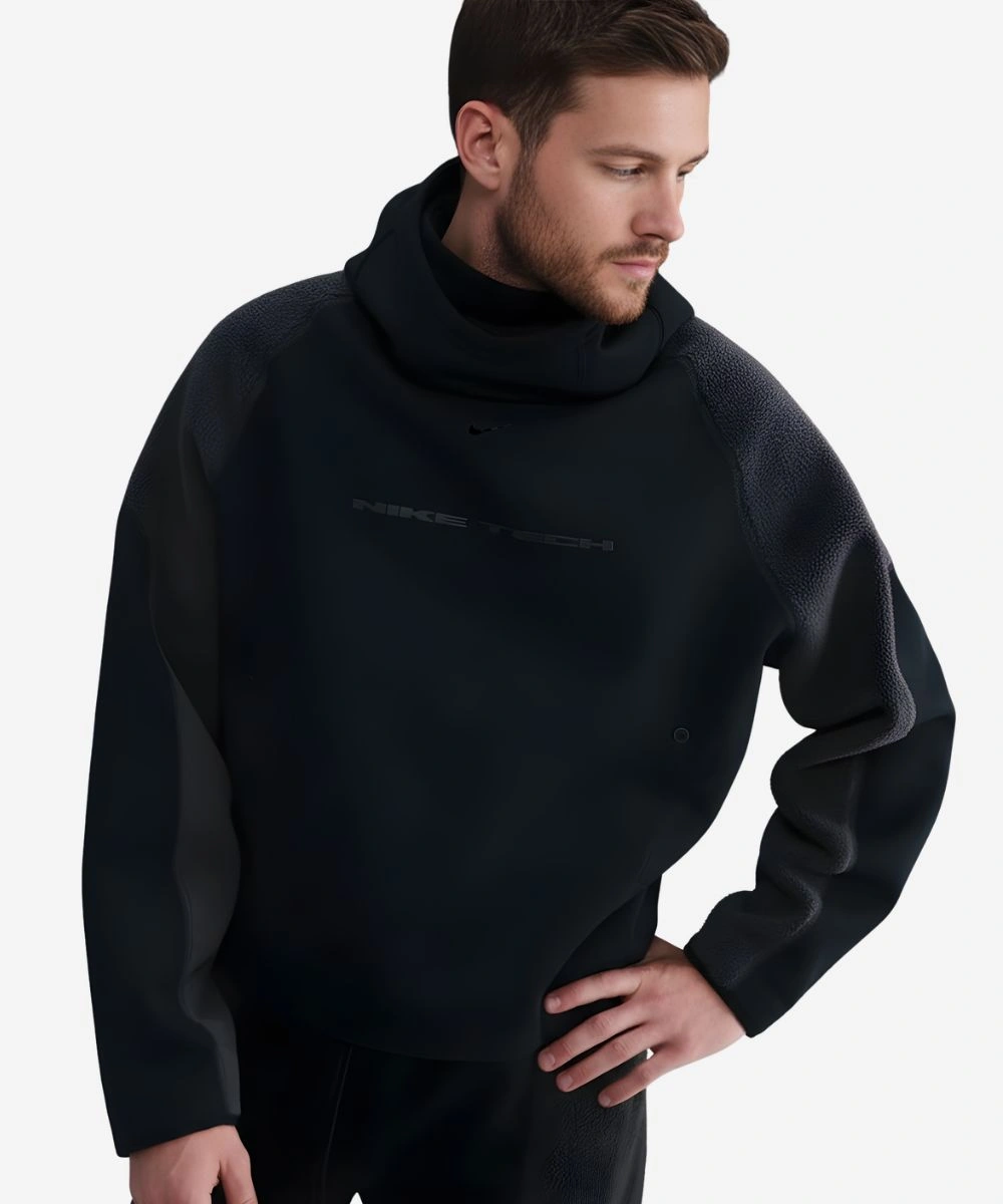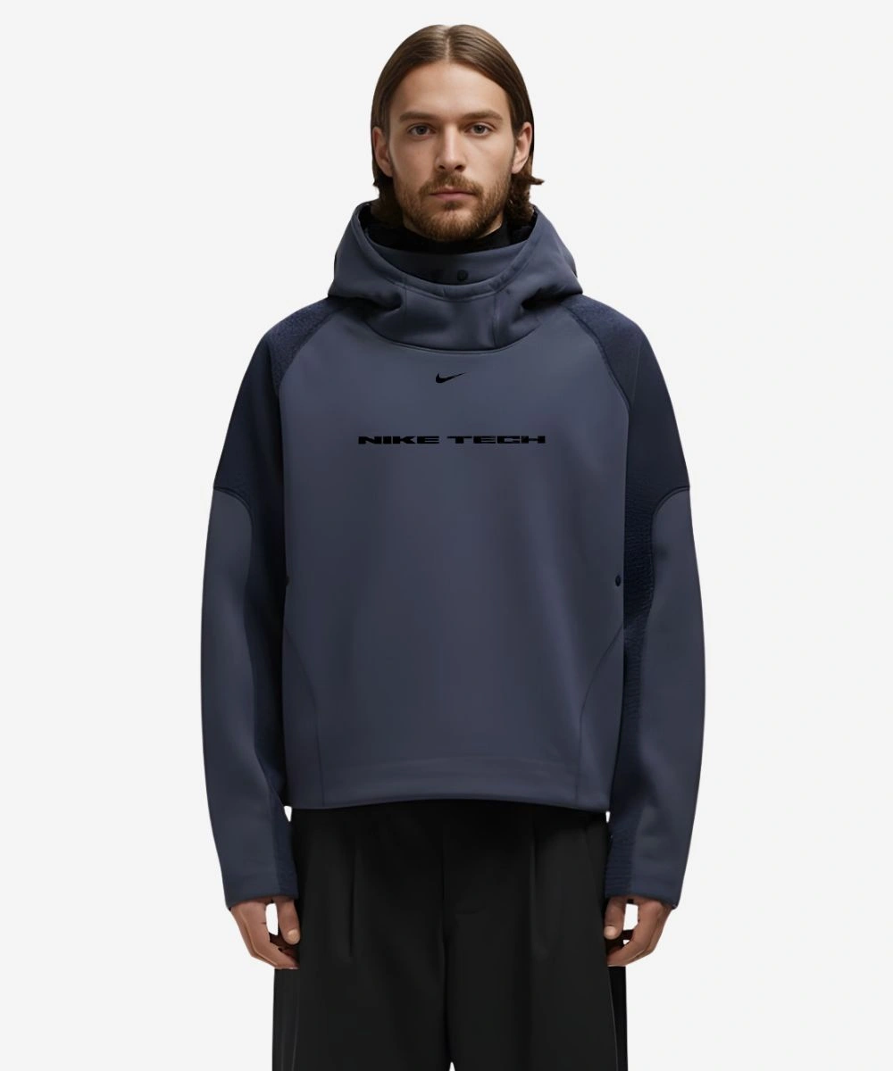 Men’s Nike Tech Boreas Oversized Pullover Fleece Hoodie – Black & Blue