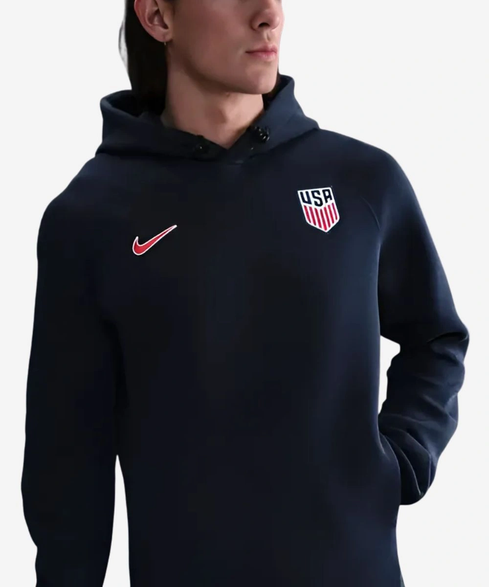 Gear up for game day with function, flair, and national pride in the Nike USMNT Tech Fleece Hoodie. Built from thick fleece that is smooth inside and out. Its bold design is ideal for both games and everyday wear. The soft texture delivers warmth without weight, and the classic hood with adjustable toggles gives you flexible coverage and airflow. This Men’s Nike USMNT Tech Soccer Fleece Pullover Hoodie – Blue is tailored with a relaxed yet sporty silhouette that lets you move freely and style with ease. It has a bold USA patch and Nike branding across the chest.Â