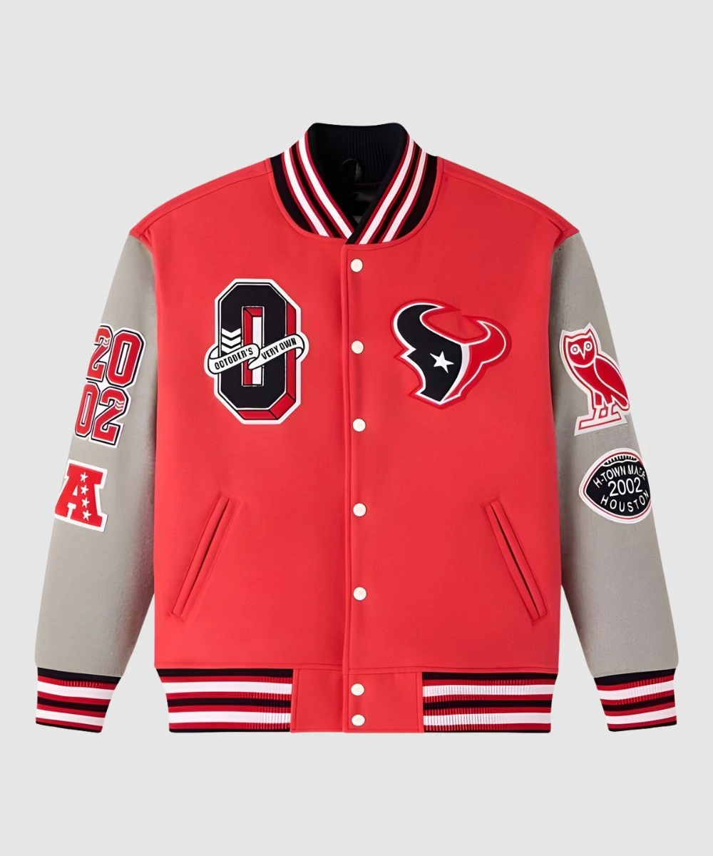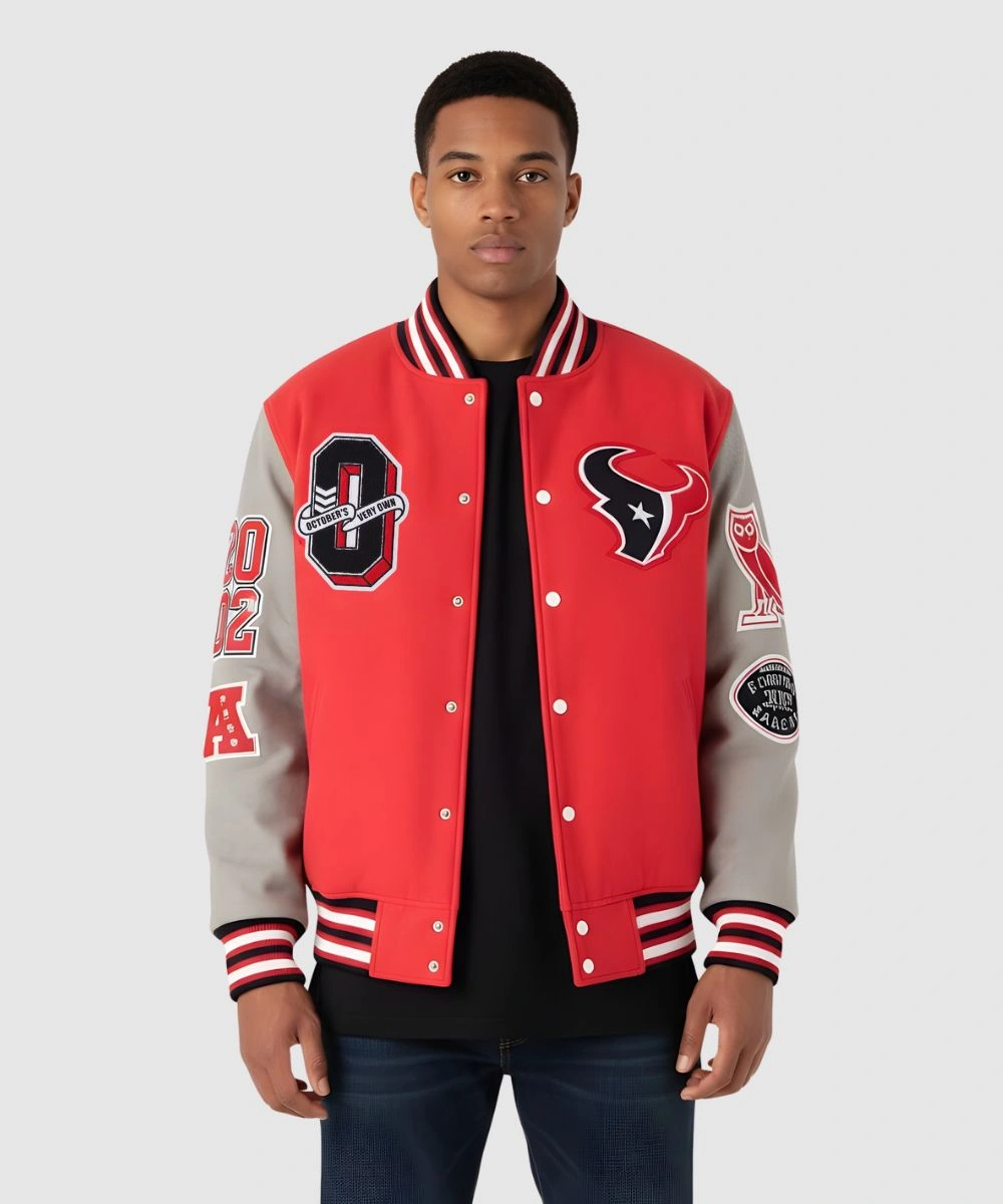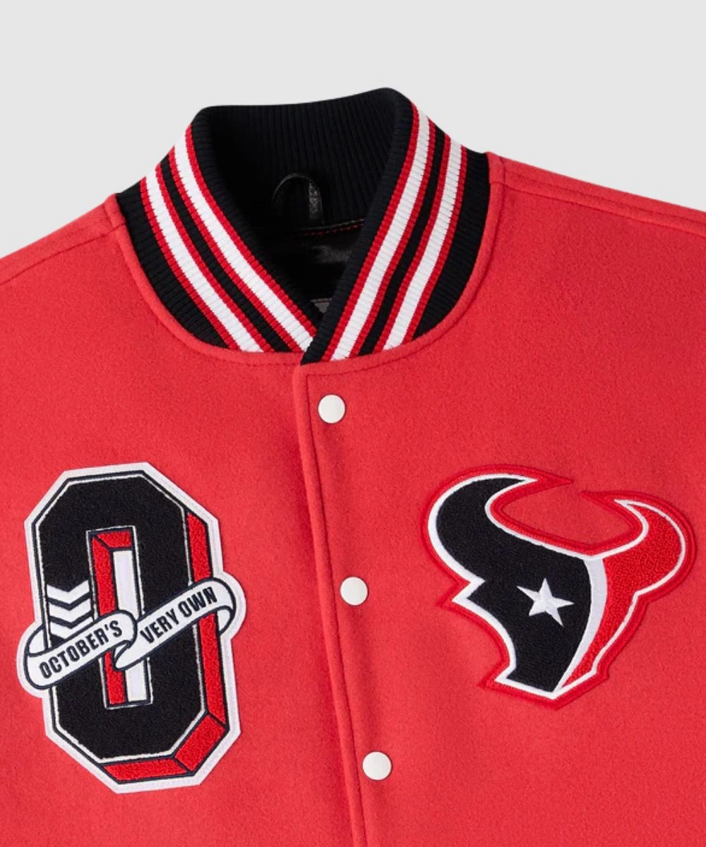 Shop 2025 October’s Very Own x NFL Houston Texans Red Varsity Bomber Jacket – Unisex