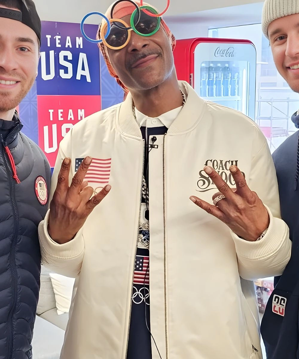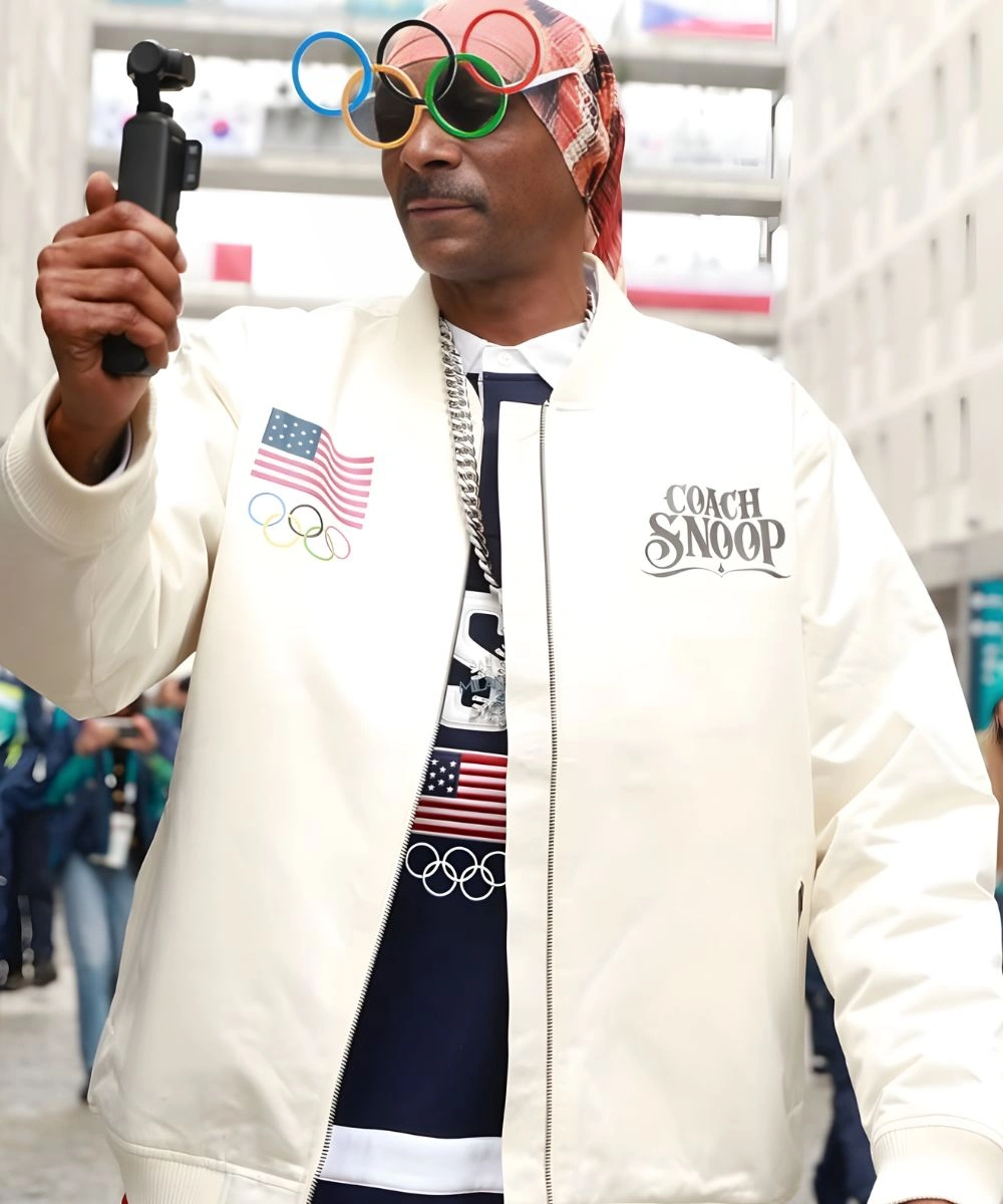 Defined by a traditional rib knit neck and matching knitted cuffs that trap warmth while maintaining its structured and athletic silhouette. Bold “USA” lettering and Olympic-inspired patterns make it a beacon of team spirit and street style refinement. The Olympic 2026 Team USA Snoop Dogg White Bomber Jacket features a streamlined zipper closure and secure zip pockets for practical utility. Its classy bomber style adds incredible versatility and functionality for statement ensembles. Every detail reflects a commitment to durable, high-end craftsmanship tailored for the modern fan.