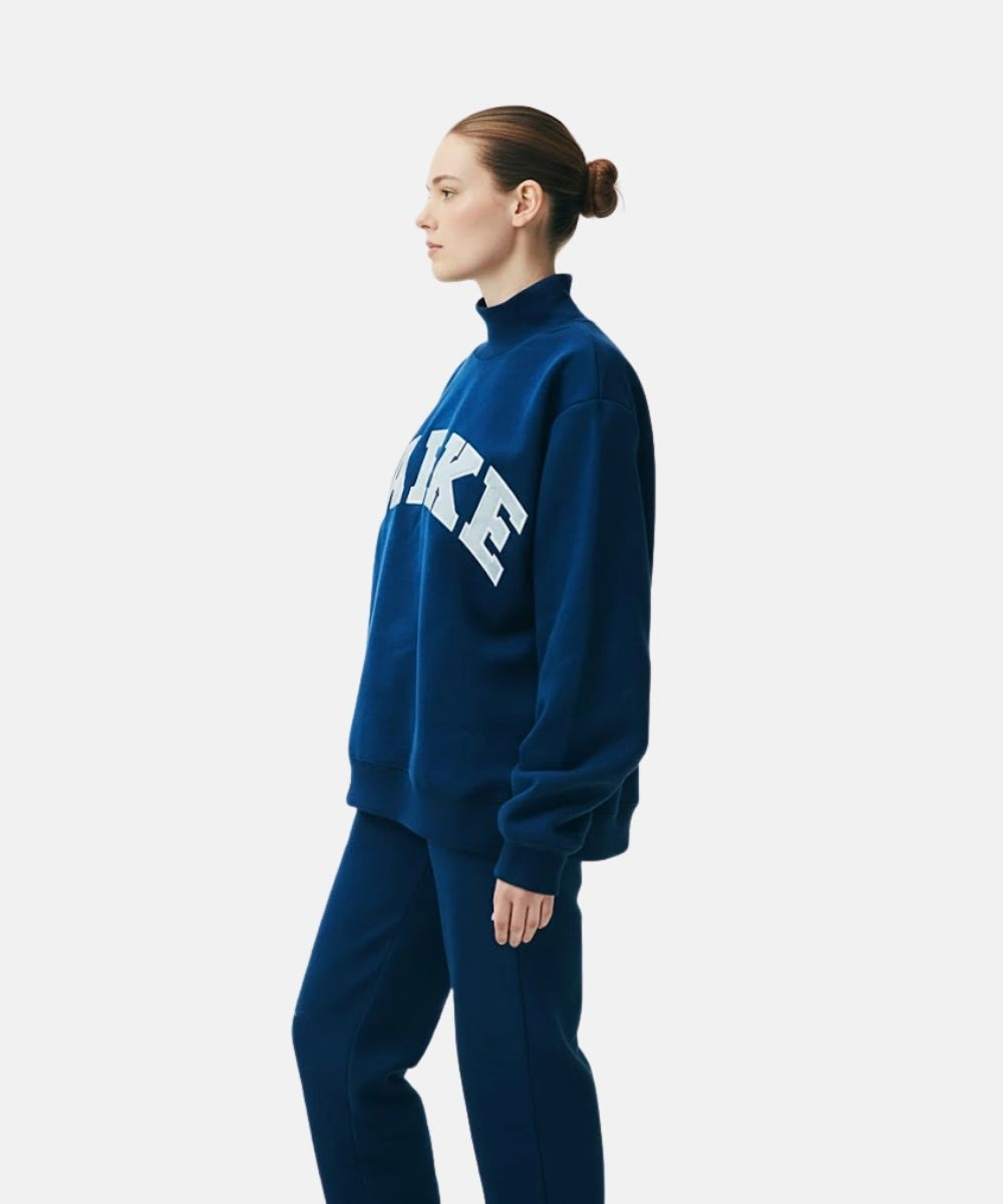 Shop Women’s Parke Holiday Varsity Turtleneck Blue Fleece Pullover Sweatshirt