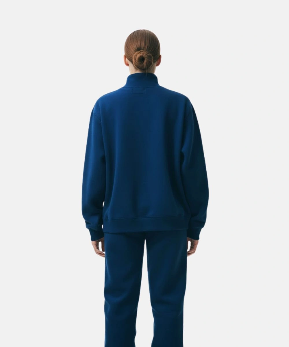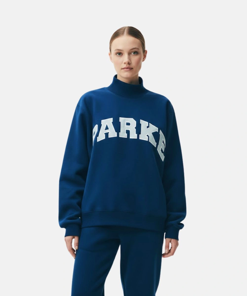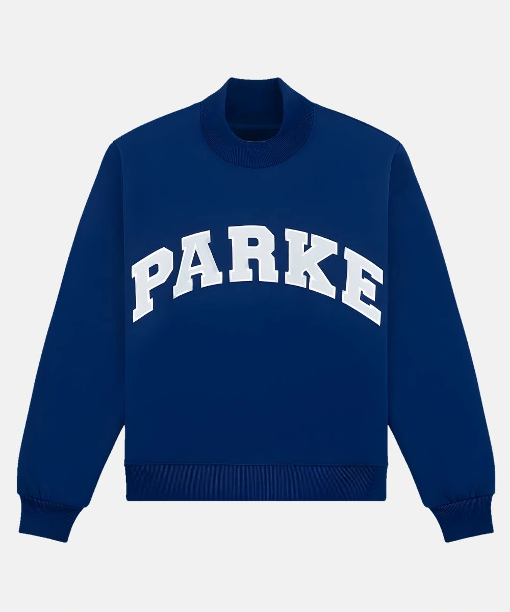 Embrace the spirit of varsity energy with an ultimate blend of comfort in this Parke Holiday Blue Turtleneck Sweatshirt. Construction cut from premium heavyweight fleece in vibrant blue and features a prominent Parke patch on the chest. The design redefines collegiate style and gives a warm and soft hand feel. It is engineered for those who like both nostalgic and modernly sophisticated styles. The stand-up crew neck collar provides extra coverage, and its minimalist front is balanced by the textured graphic lettering.