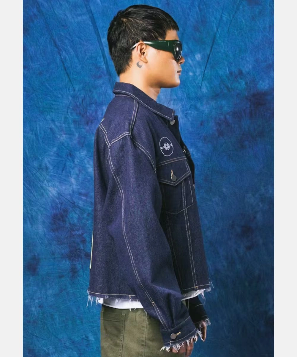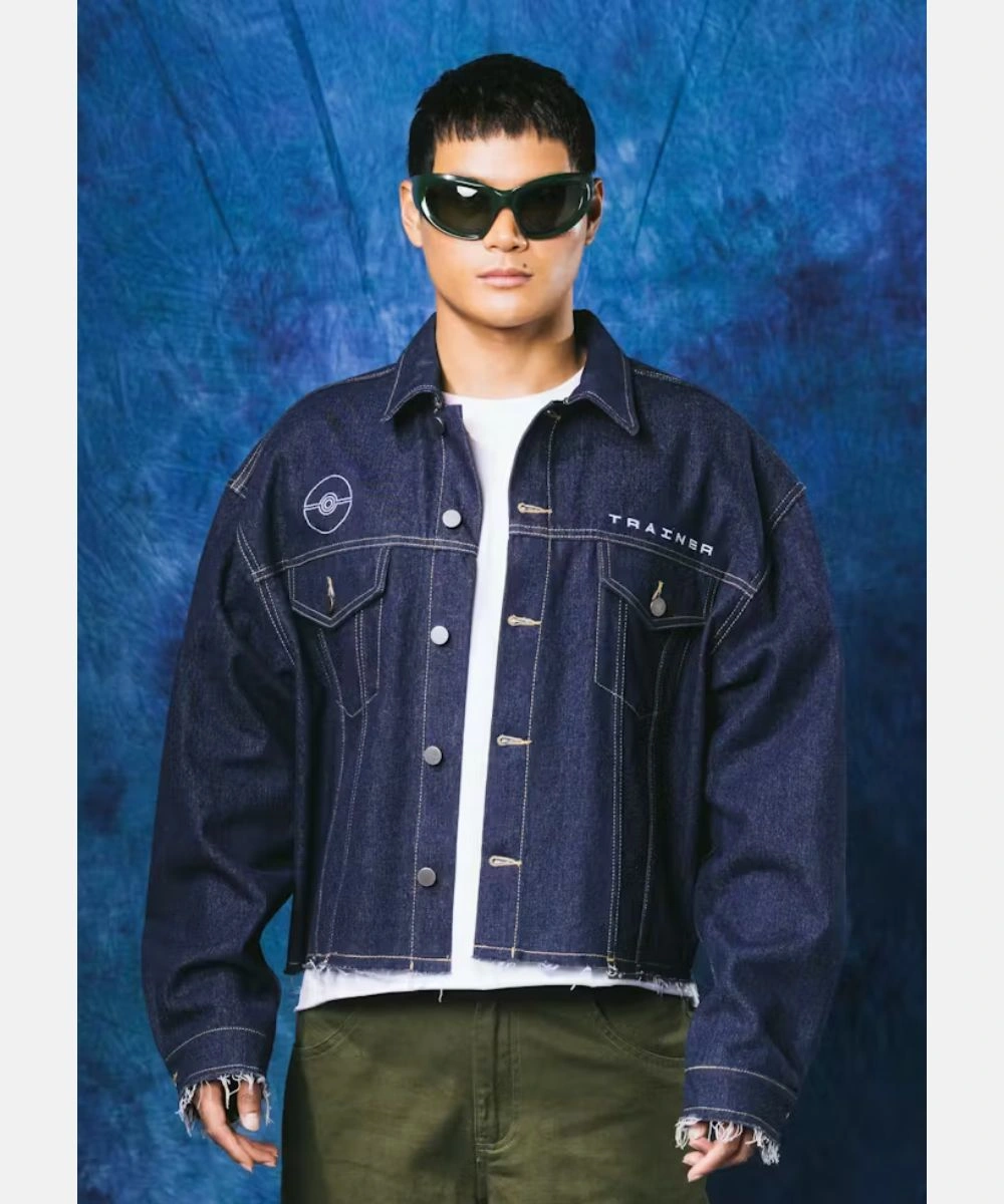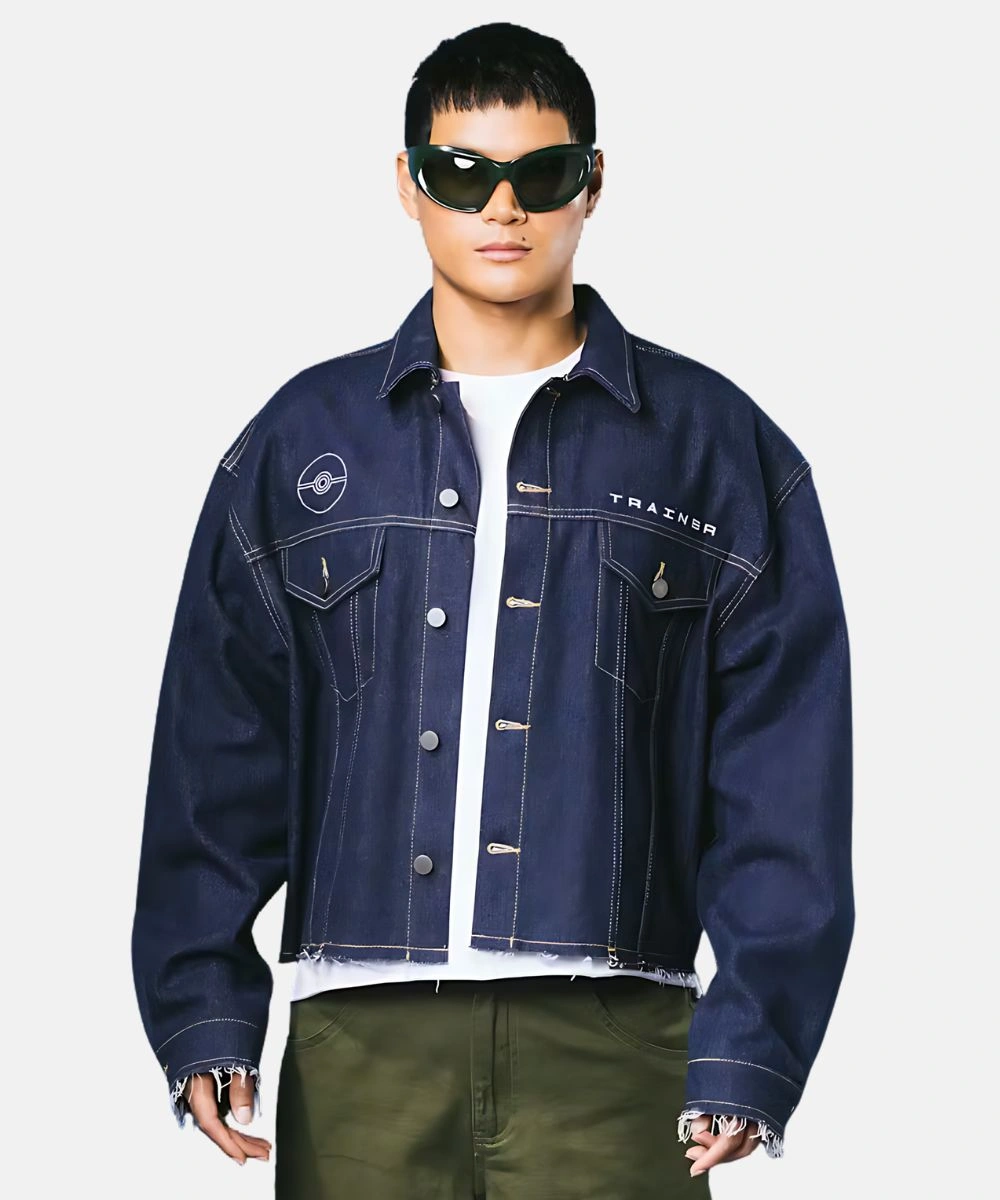 The jacket has a raw-edge hem and cuffs with loose white threads for an edgy aesthetic, while buttoned cuffs balance structure and secure fit. Shop Pokemon Pikachu Blue Denim Jacket For Men to get urban style and modern flair to the classic denim silhouette. It has crisp white Pikachu branding details at the chest and a bold Pikachu patch on the back. Cropped cut sits higher on the waist and generously cut, loose sleeves contribute to a relaxed and comfortable fit. It also has two buttoned chest pockets to carry your essentials.