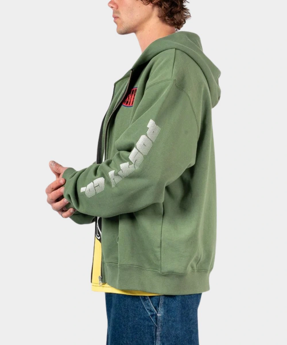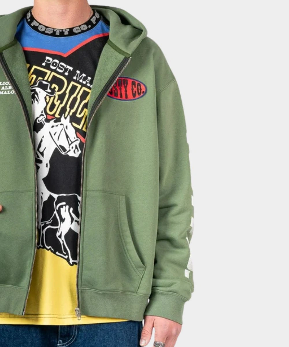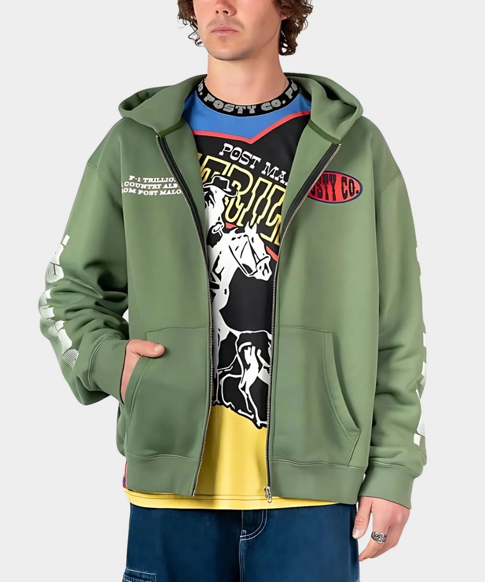 Men’s Post Malone Sunfade Zip-Up Green Fleece Pullover Hoodie
