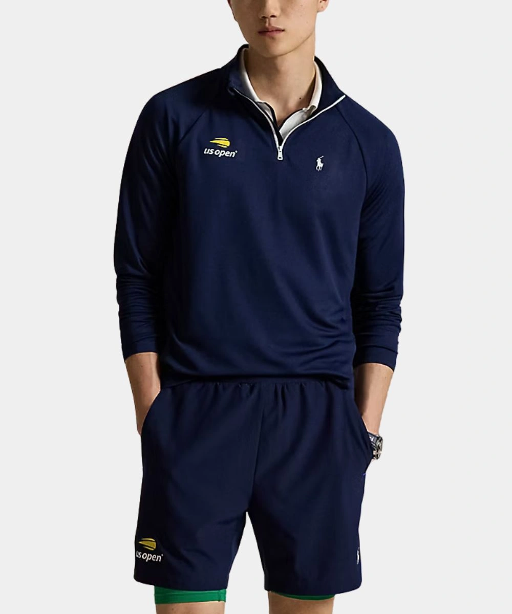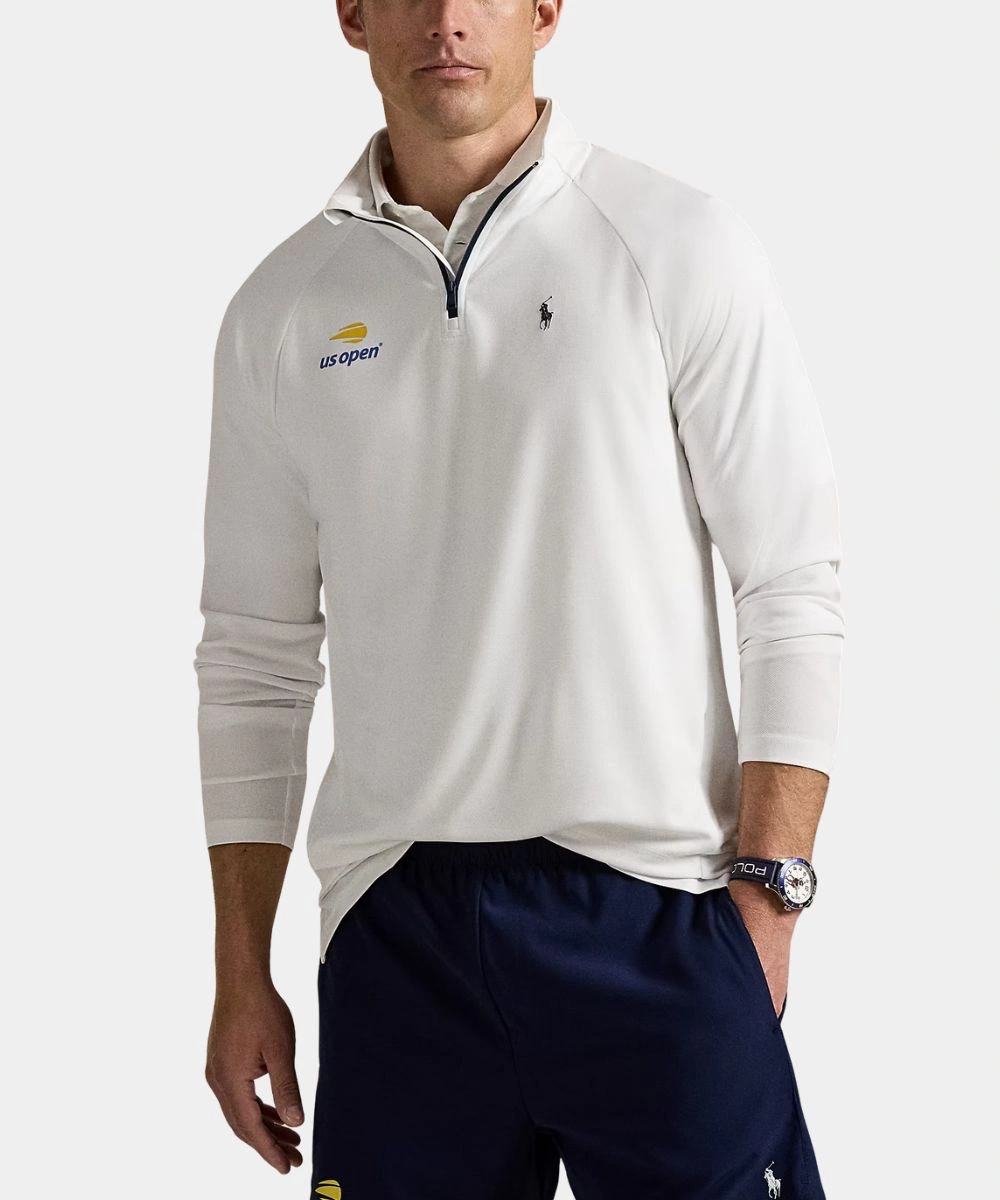 This jacket has clean, visible shoulder-to-sleeve reinforced stitching that gives you structured support and enhances movement. Polo Ralph Lauren US Open 20th Anniversary Performance Half-Zip Pullover Piqué Sweatshirt – Navy Blue and White is ideal for a sharp, defined style. The colour scheme adds versatility to your style, while quality construction ensures long-lasting wear. It has long fitted sleeves with rib knit cuffs to add extra coverage and a comfy fit. Available in crisp white shade contrasted by a navy blue zipper, it reflects the classic US Open palette. Its classic design makes this a standout piece for tennis fans and streetwear lovers alike.