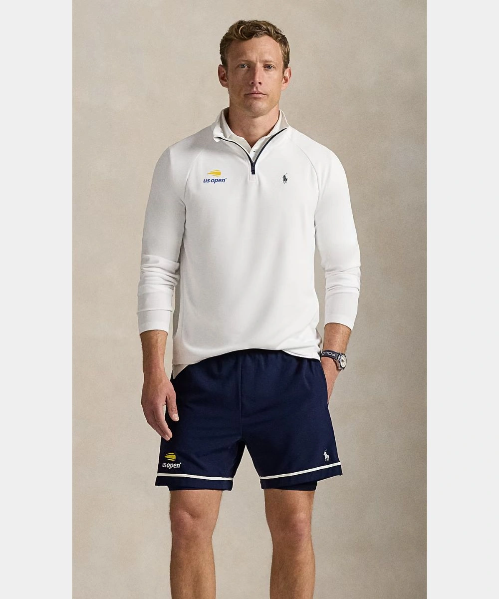 Wear the tradition of champions with elite performance and signature style in the Ralph Lauren US Open Performance Piqué Sweatshirt. Designed with traditional athletic fit and a navy blue base, its premium fabric is both comforting and warm. The design features a stand-up collar to protect the wind from the cold breeze. The half zip closure adds breathability and makes it easy to pull on and off in style. Shop Polo Ralph Lauren US Open 20th Anniversary Performance Half-Zip Pullover Piqué Sweatshirt – Navy Blue and White for an exclusive edition of athletic function and timeless style. It features a subtle branding on the chest that is instantly recognizable— the US Open and the Ralph Lauren logo.