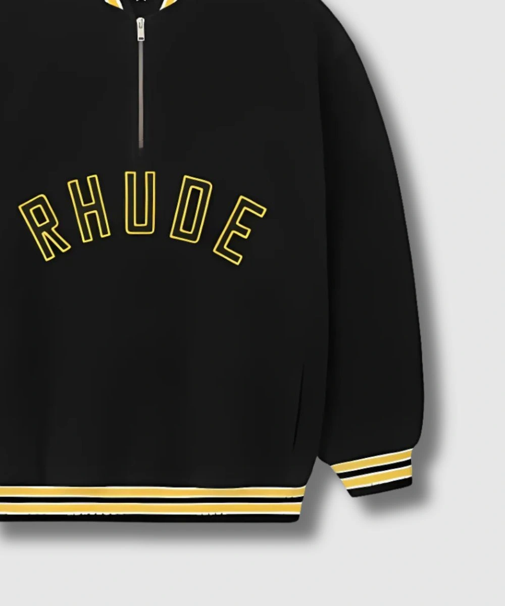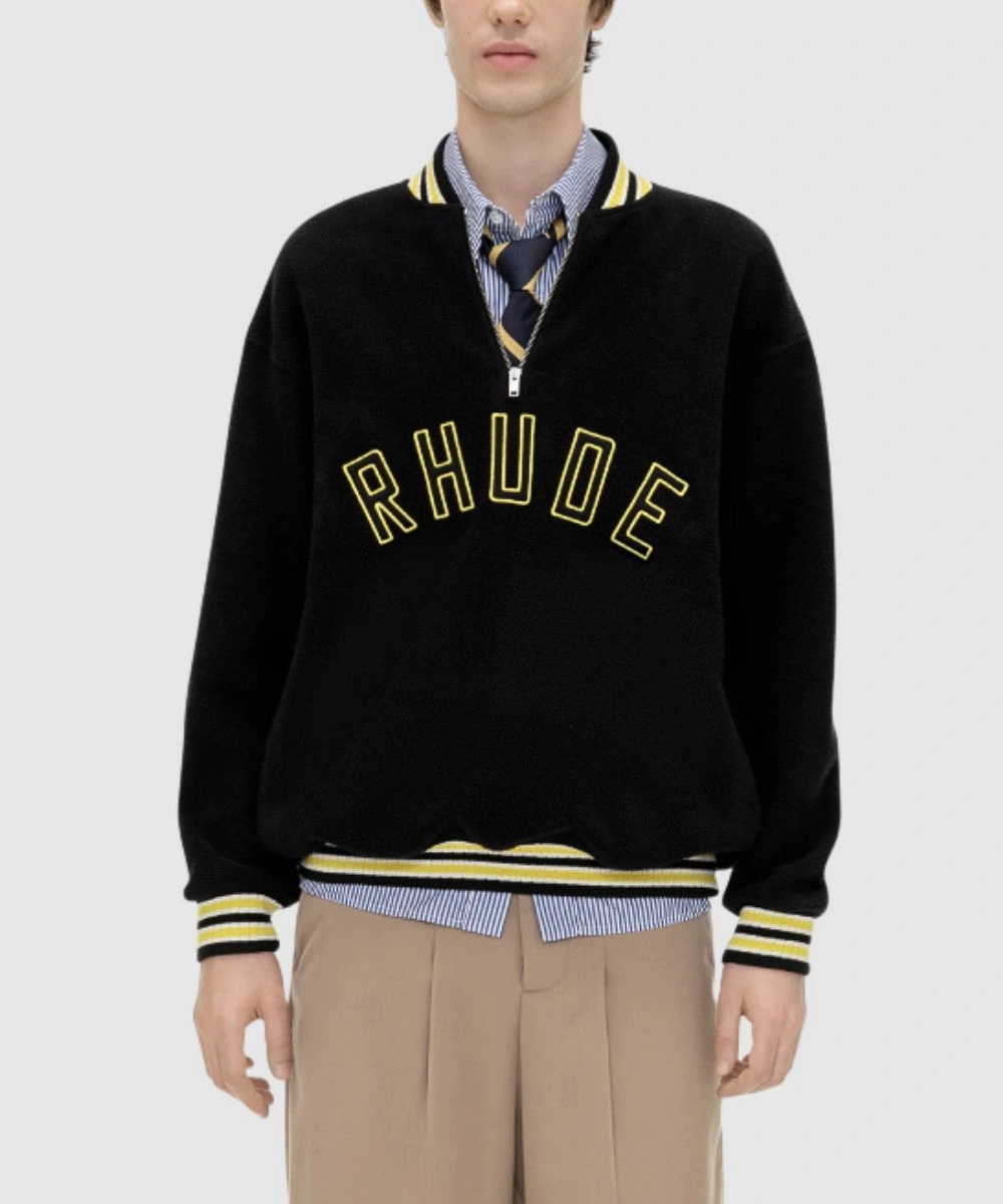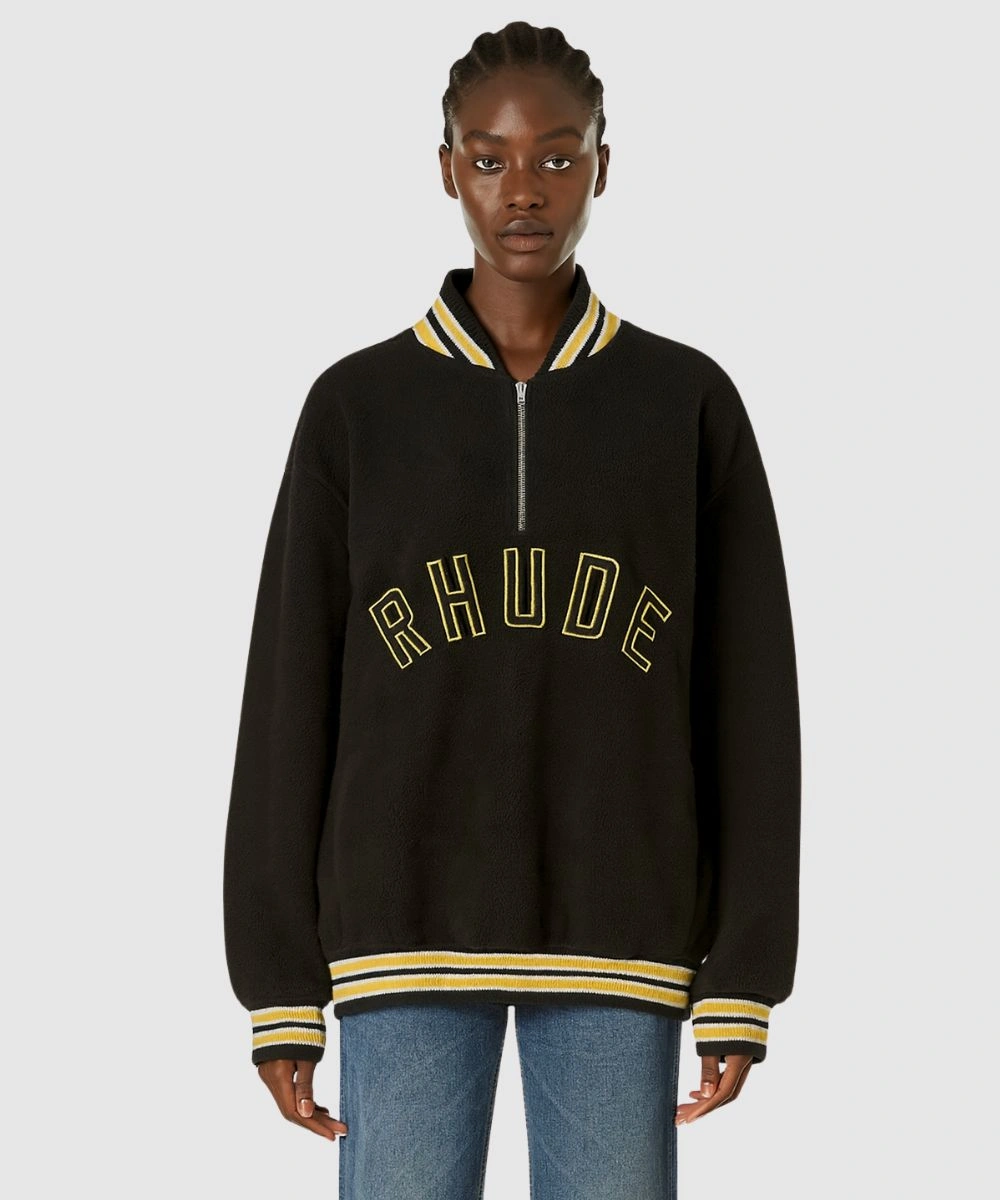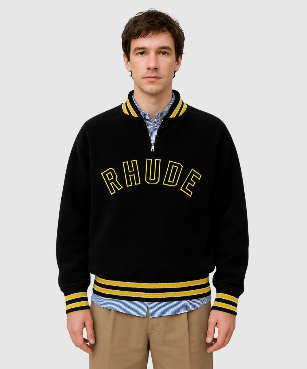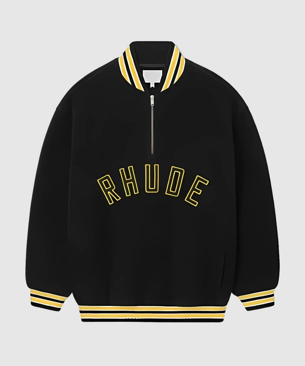 Rhude Quarter-Zip Pullover Black Varsity Jacket