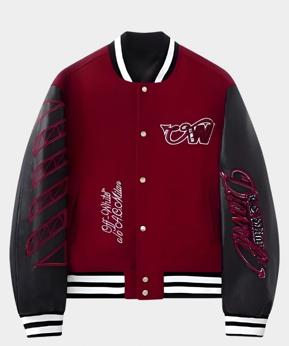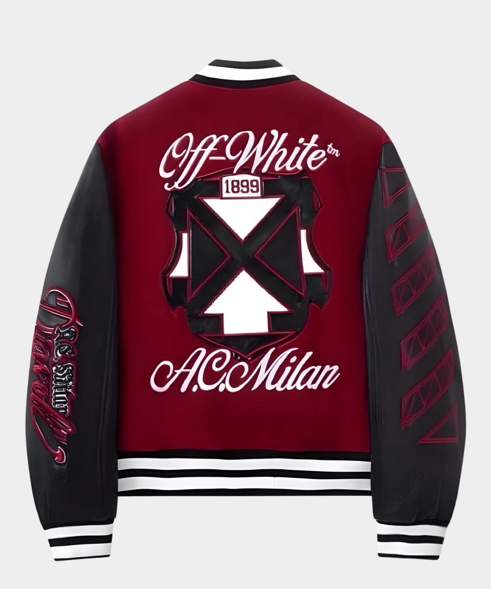 AC Milan x Off-White Ruben Loftus-Cheek Varsity Bomber Jacket – Maroon & Black
