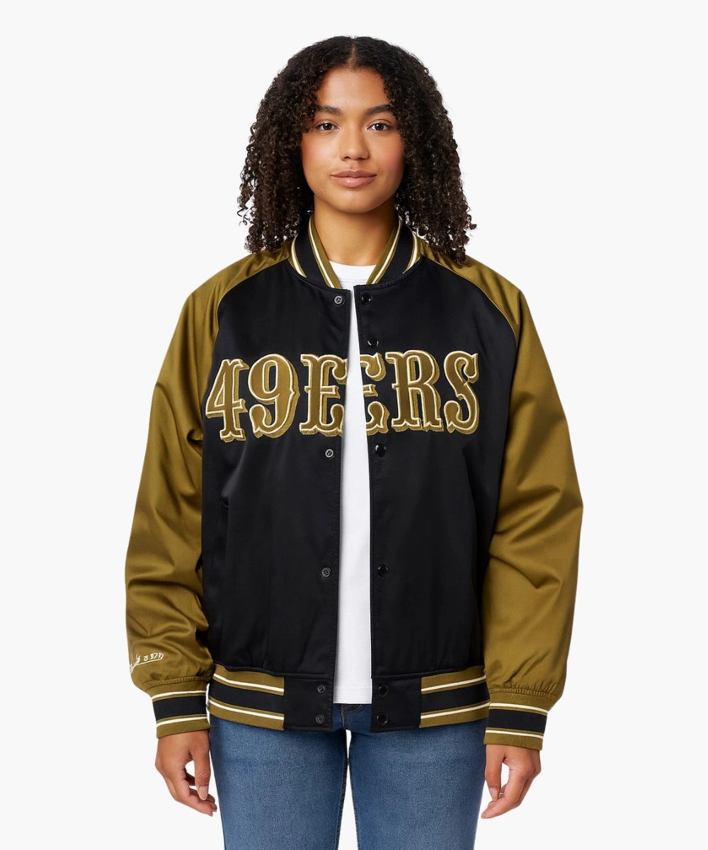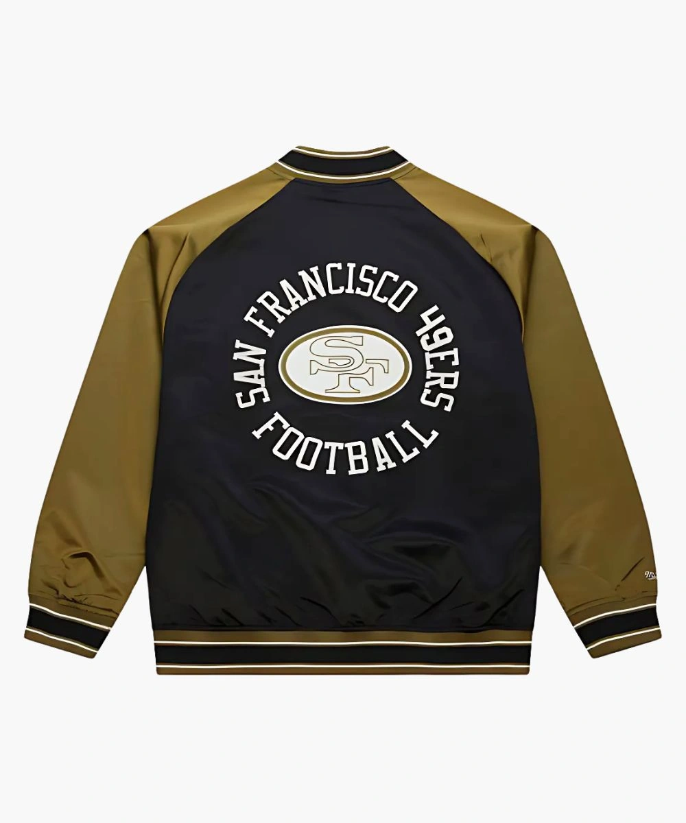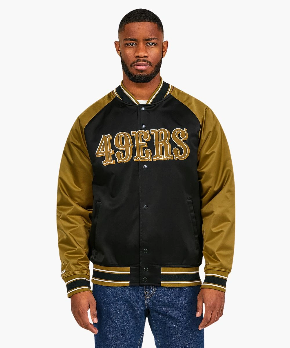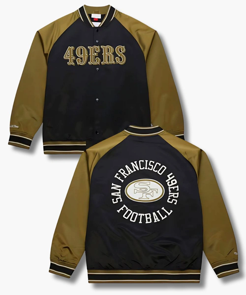 Upgrade your game day pride with classic varsity aesthetics in the San Francisco 49ers Double Clutch Satin Raglan Jacket. The design is stitched with high-quality satin featuring the 49ers’ bold branding at the chest. Its glossy texture feels soft while the black and olive theme pops with vibrancy. The Unisex Mitchell & Ness San Francisco 49ers Vintage Logo Double Clutch Satin Raglan Full-Snap Jacket – Black And Olive offers an athletic yet relaxed silhouette perfect for the field or the streets. It features a rib knit collar with olive, white and black stripes that adds both contrast and comfort. At the front, snap buttons allow an easy and secure fit while enhancing the classic varsity style.