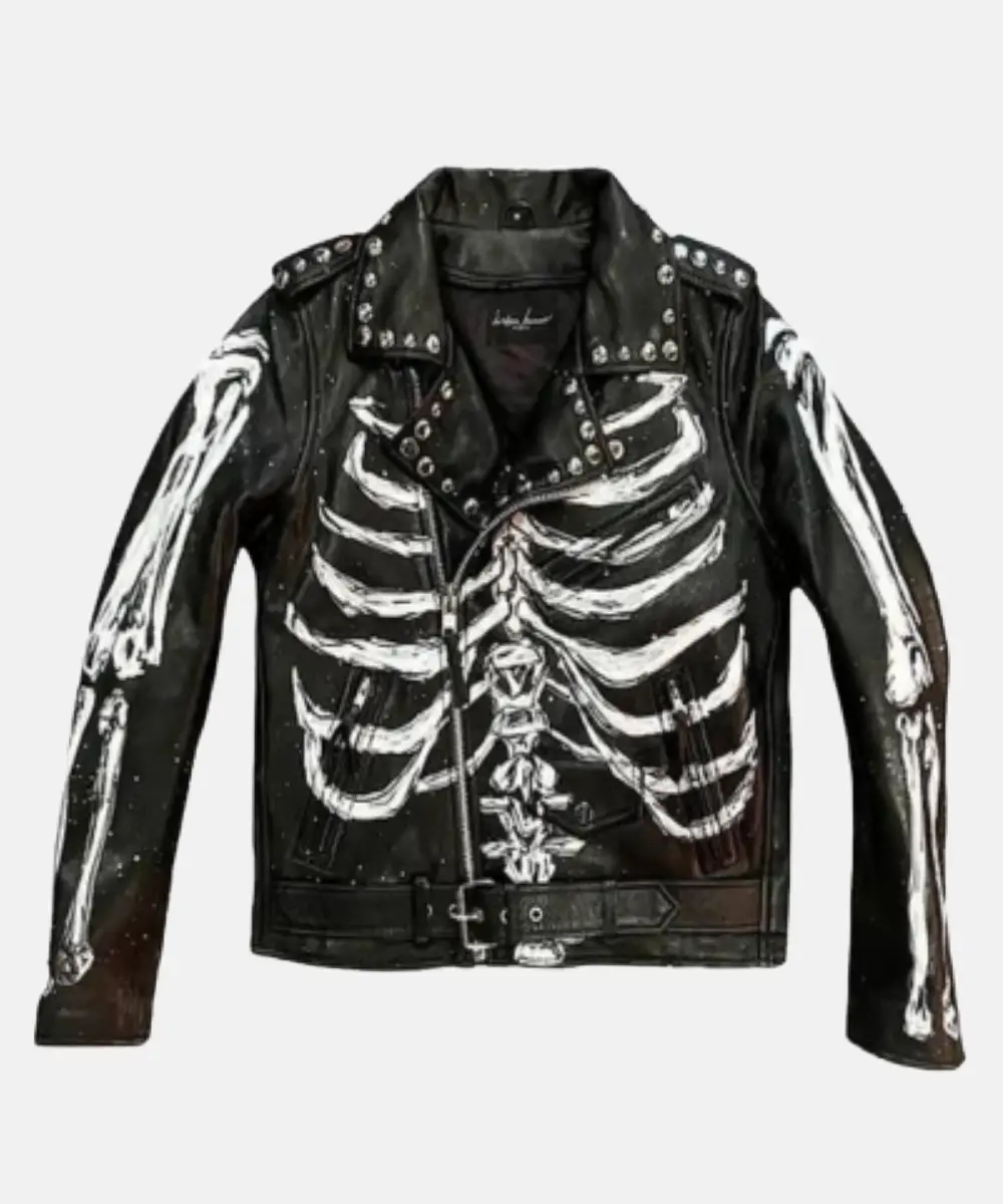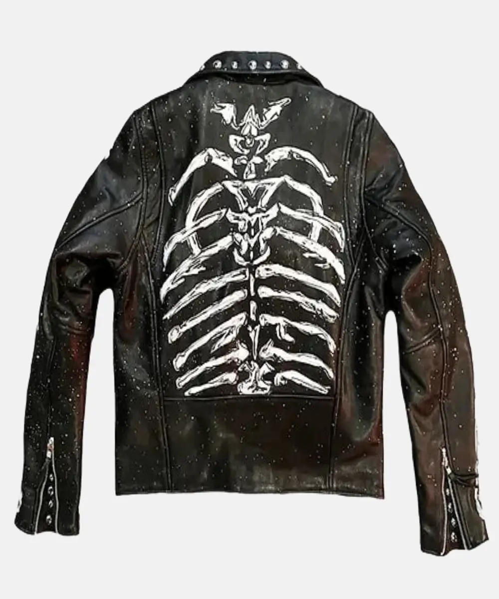 The black leather jacket bones Halloween cosplay moto jacket have the costume design perfectly as it complements the festive. The genuine imported leather has inner soft viscose lining with inner viscose lining for comfort.Ā