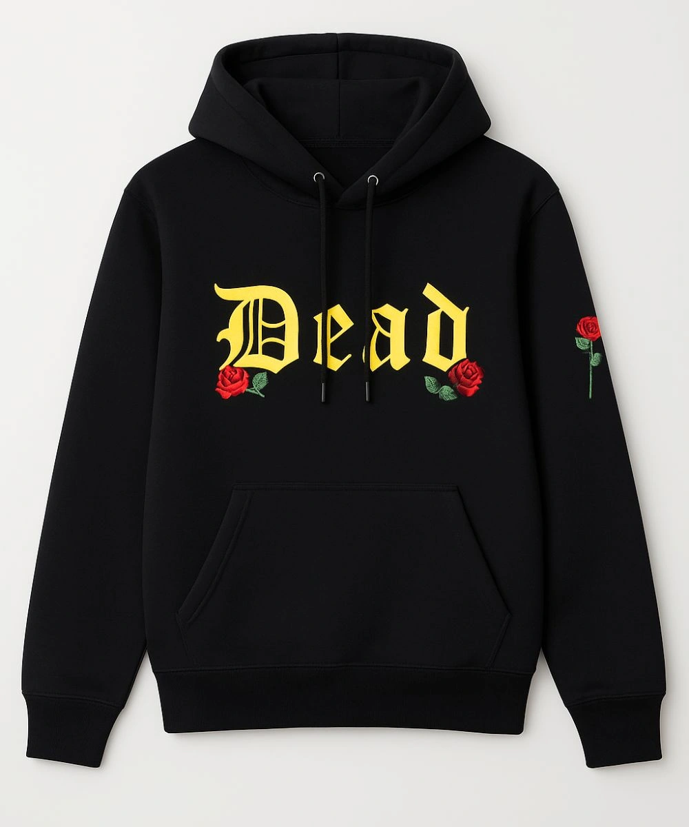 Slip into a bold street attitude with a flourish of floral flair with this standout hoodie. This cosy style is a confident statement piece inspired by Hip Hop Star Snoop Dogg’s style. It has a floral graphic with Dead lettering across the chest that brings a vivid contrast and turns heads. The design features a pullover design for easy slip-on style and everyday convenience. Full-length sleeves also feature floral graphic detail with ribbed cuffs that lock the snug fit and give a structure to it.Â
