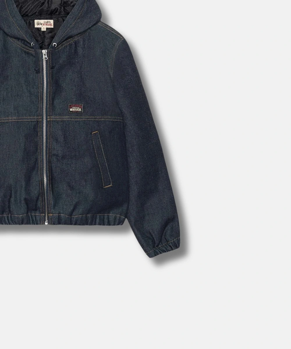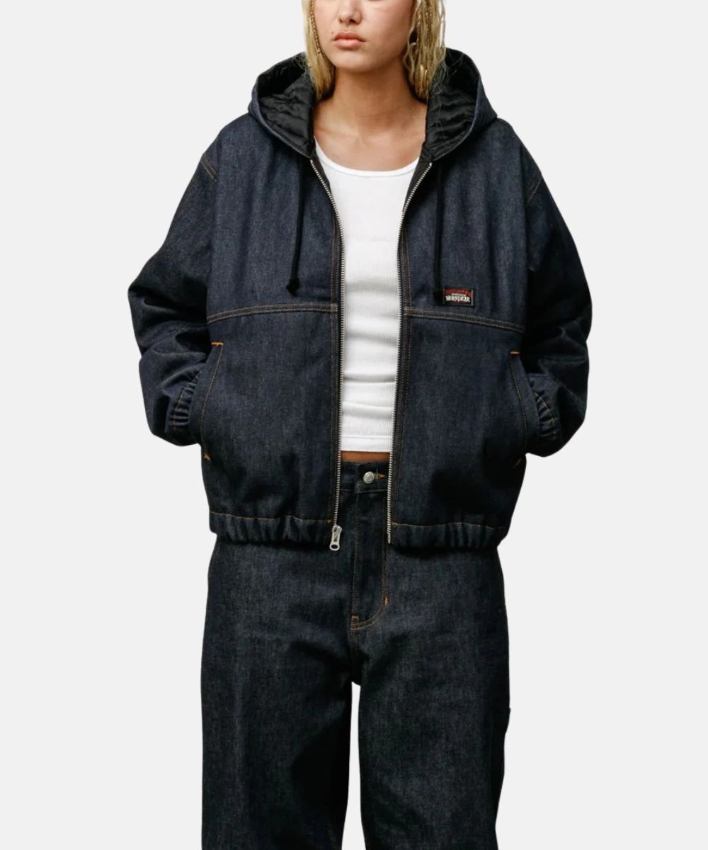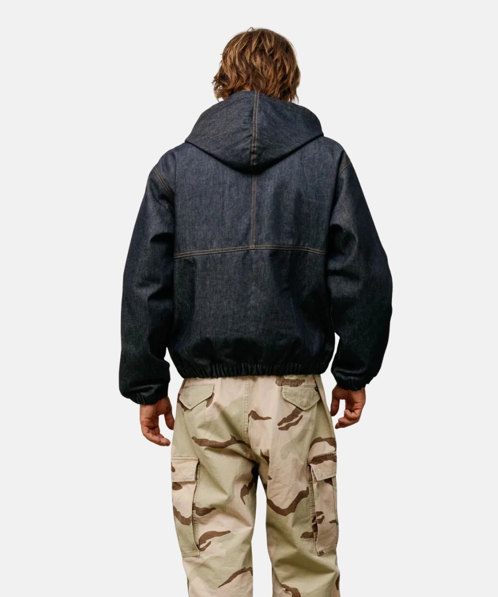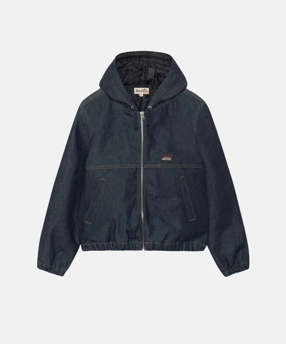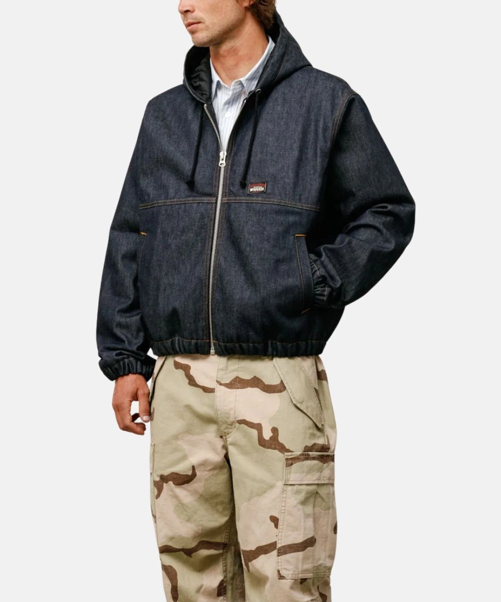 Unlock the balance between rugged look and street-ready warmth—the Stüssy Insulated Denim Work Jacket delivers comfort with timeless style. The sharp fit and structured silhouette are ideal for solo wear and layering. The supreme denim texture is extremely soft and comforting, keeping you warm during chill weather. Stüssy Raw Denim Workwear Jacket Hooded Blue features a durable YKK metal zipper for a secure fit and convenience in style. The cosy hood is woven with a drawcord for adjustable comfort. This hoodie carries a simplistic design yet delivers a standout appeal.Â