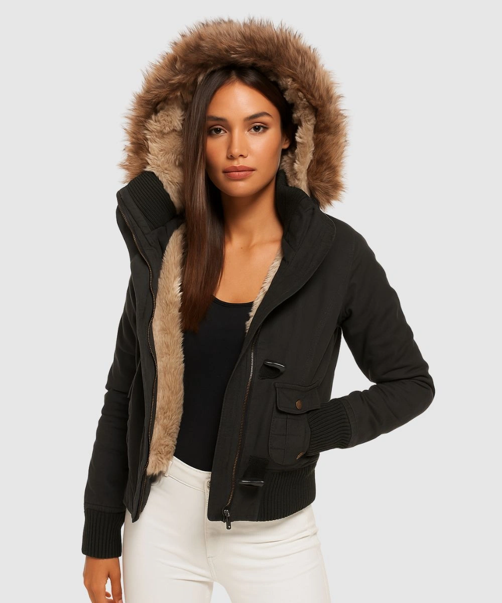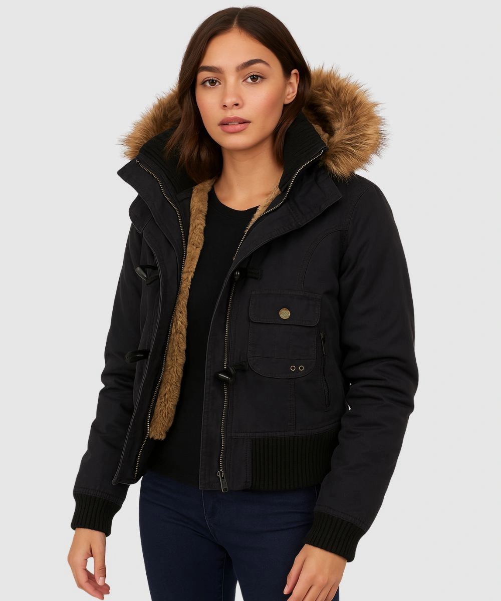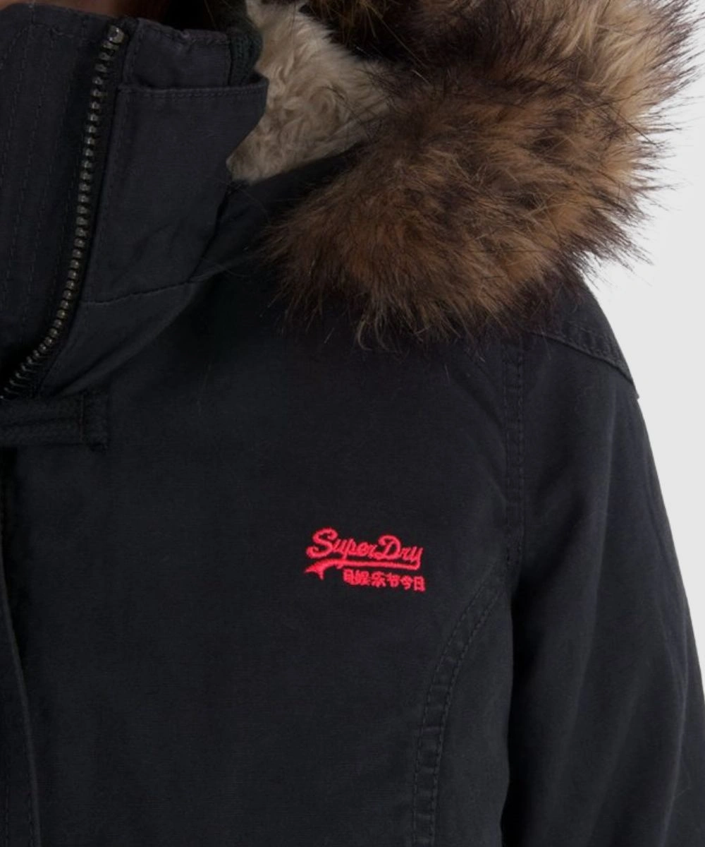 Shop Women’s Superdry Study Duffle Black Fur Hooded Jacket