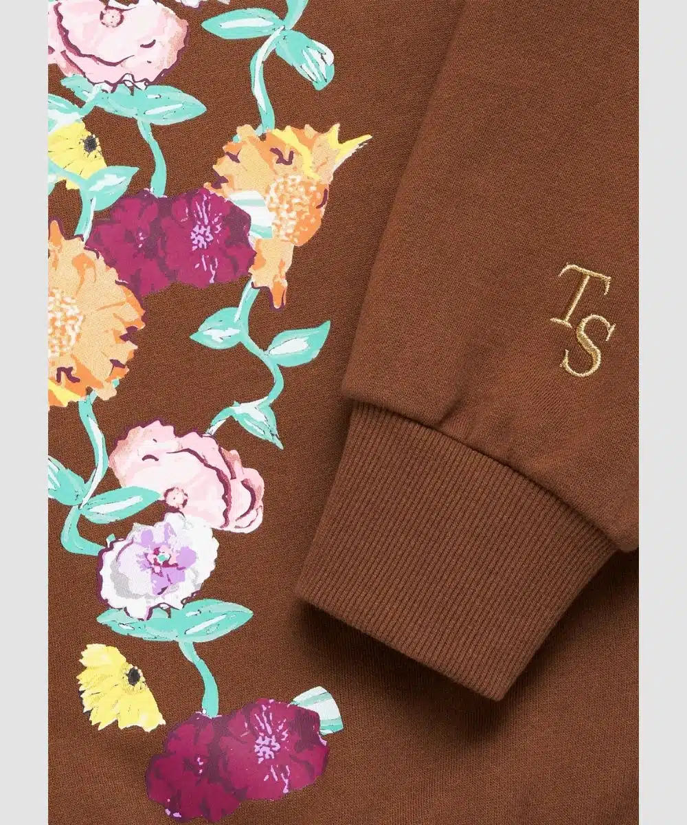 Upgrade your concert-ready style with the cosy The Eras Tour Acoustic Piano Brown Hoodie. This piece is especially designed for all Taylor Swift lovers and offers peaceful emotion with a slight musical flair. It has thick fleece to keep you warm and comfortable throughout the day. The earthy brown tone features a delicate acoustic piano flower print on the front and hood. Functional details include a full zip fastening and ribbed hemline to keep the warmth in and add easy on and off convenience.