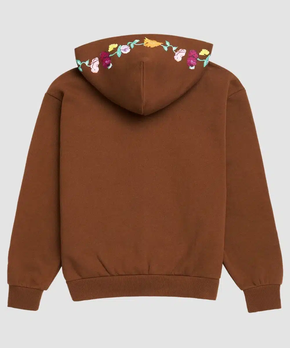The Eras Tour Brown Hoodie is spacious and offers solid coverage during wintry days. The versatile design gives you flexibility and carries the spirit of The Eras Tour wherever you go. Ribbed cuffs add a structure and refined touch with a cosy fit. This piece has a TS embroidery on the sleeves for a subtle character and signature finish without overwhelming the calm aesthetic. Drawcords on the hood allow you to alter the fit and dual pockets on the waist hold all your essentials.