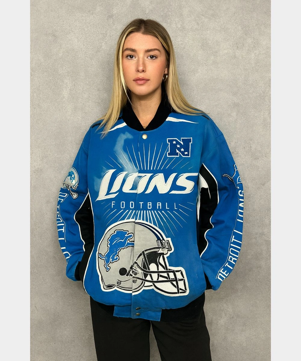 Shop Vintage NFL Detroit Lions Blue Racing Bomber Jacket