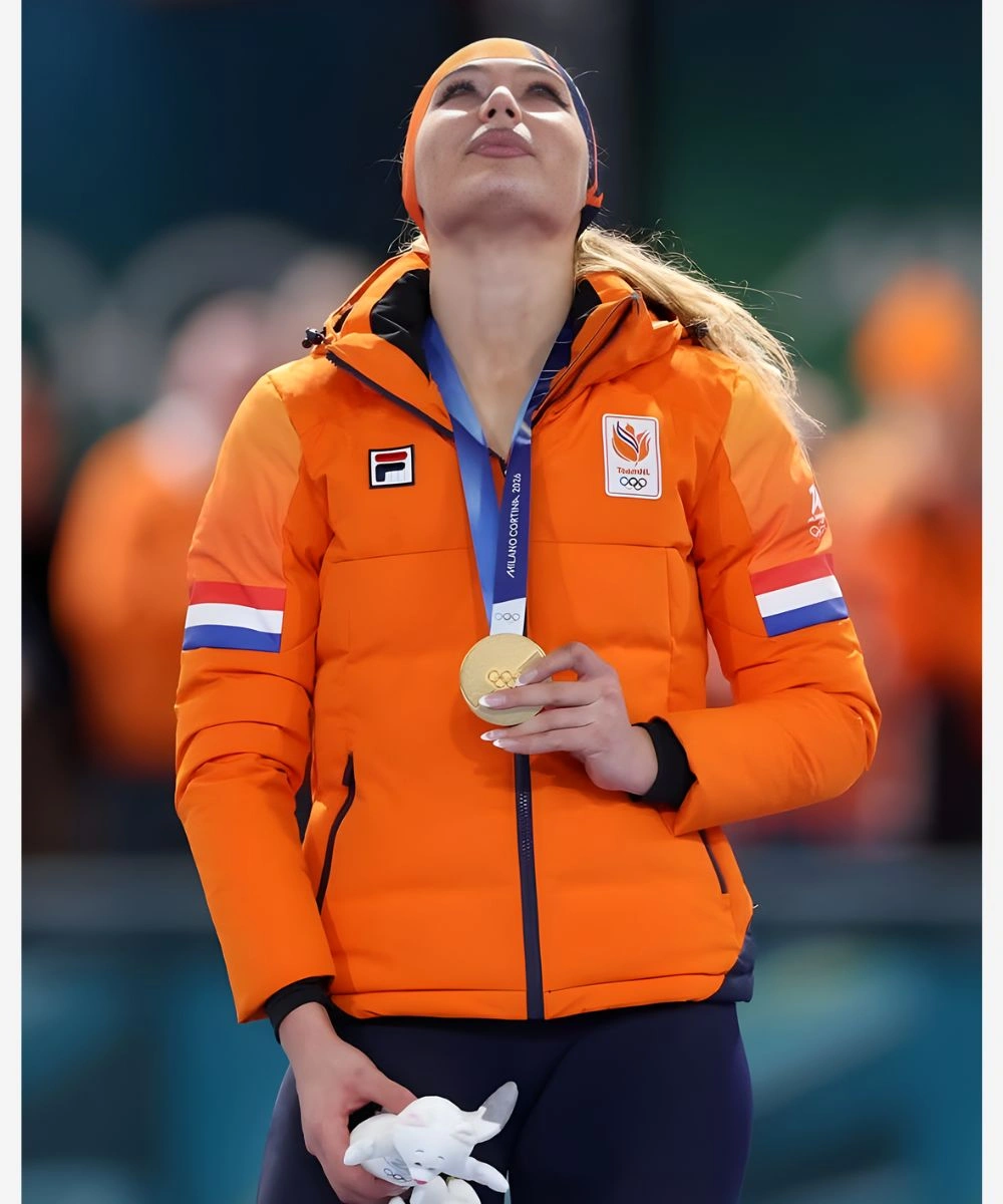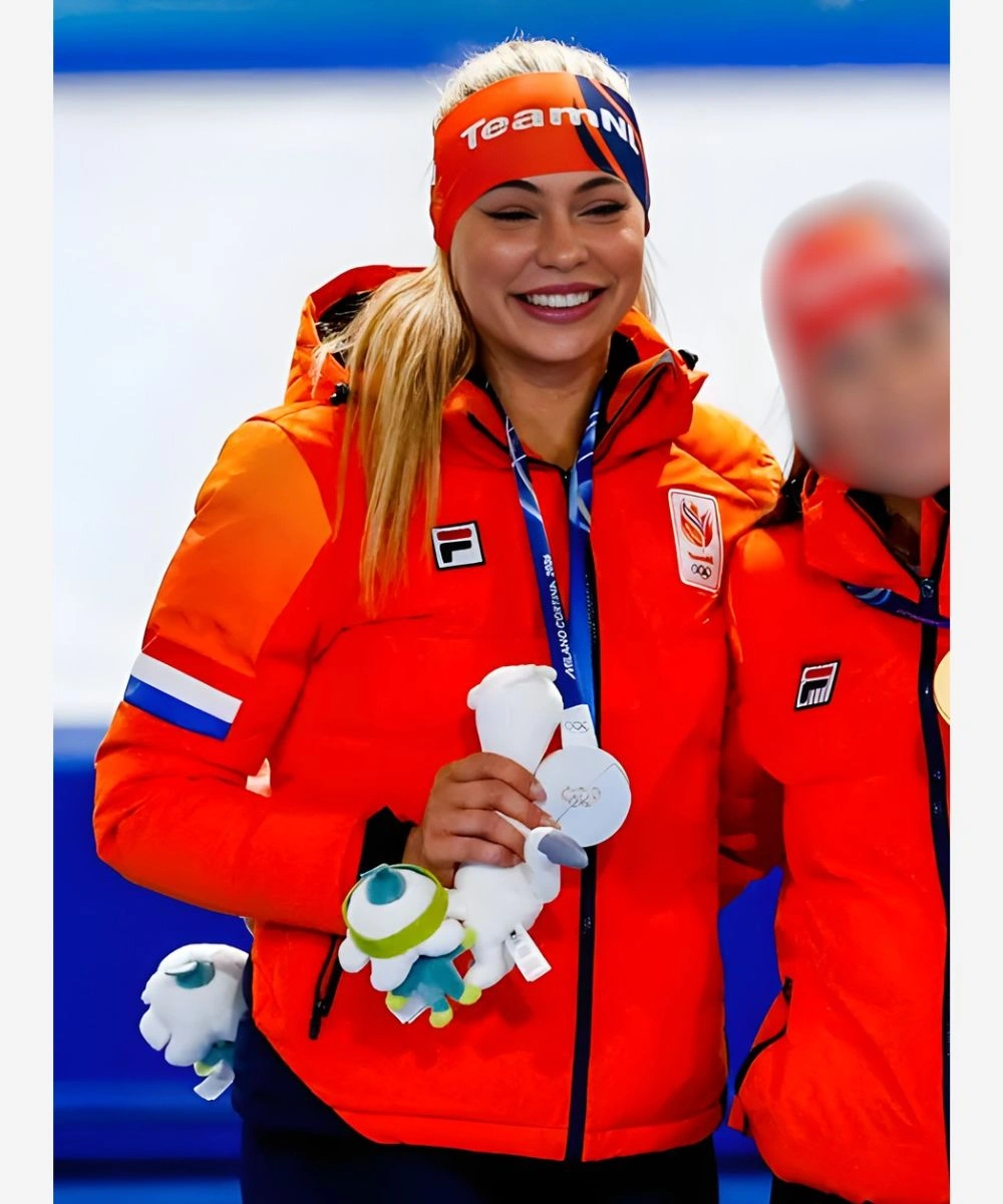 Milano Cortina 2026 Winter Olympics Opening Ceremony Team Netherlands Jutta Leerdam Orange Puffer Jacket