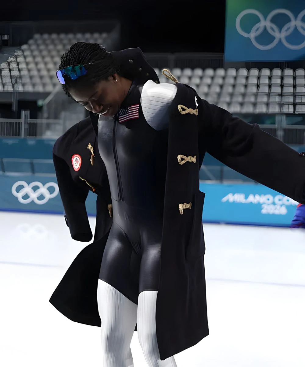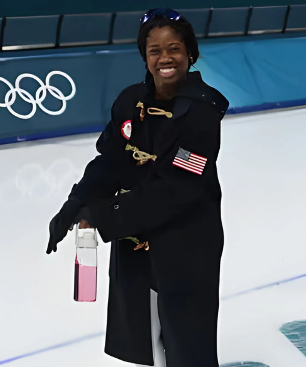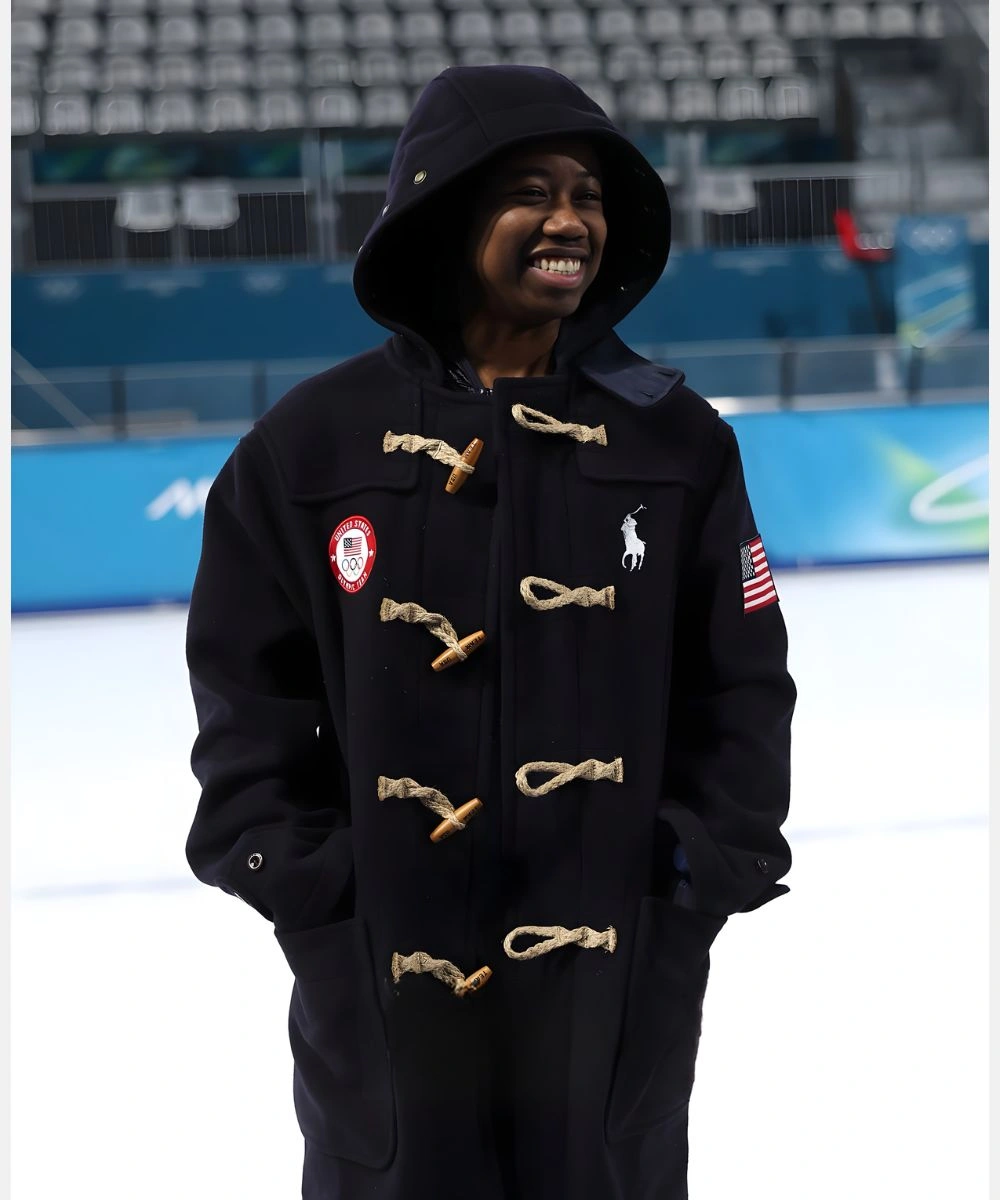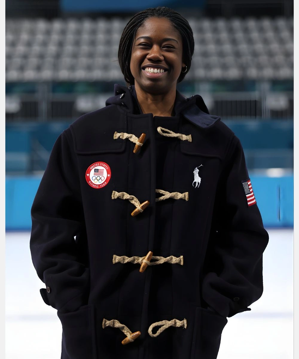 American Skater Erin Jackson Winter Olympics 2026 Polo Ralph Lauren Team USA Flagbearer Toggle Coat – Navy Blue