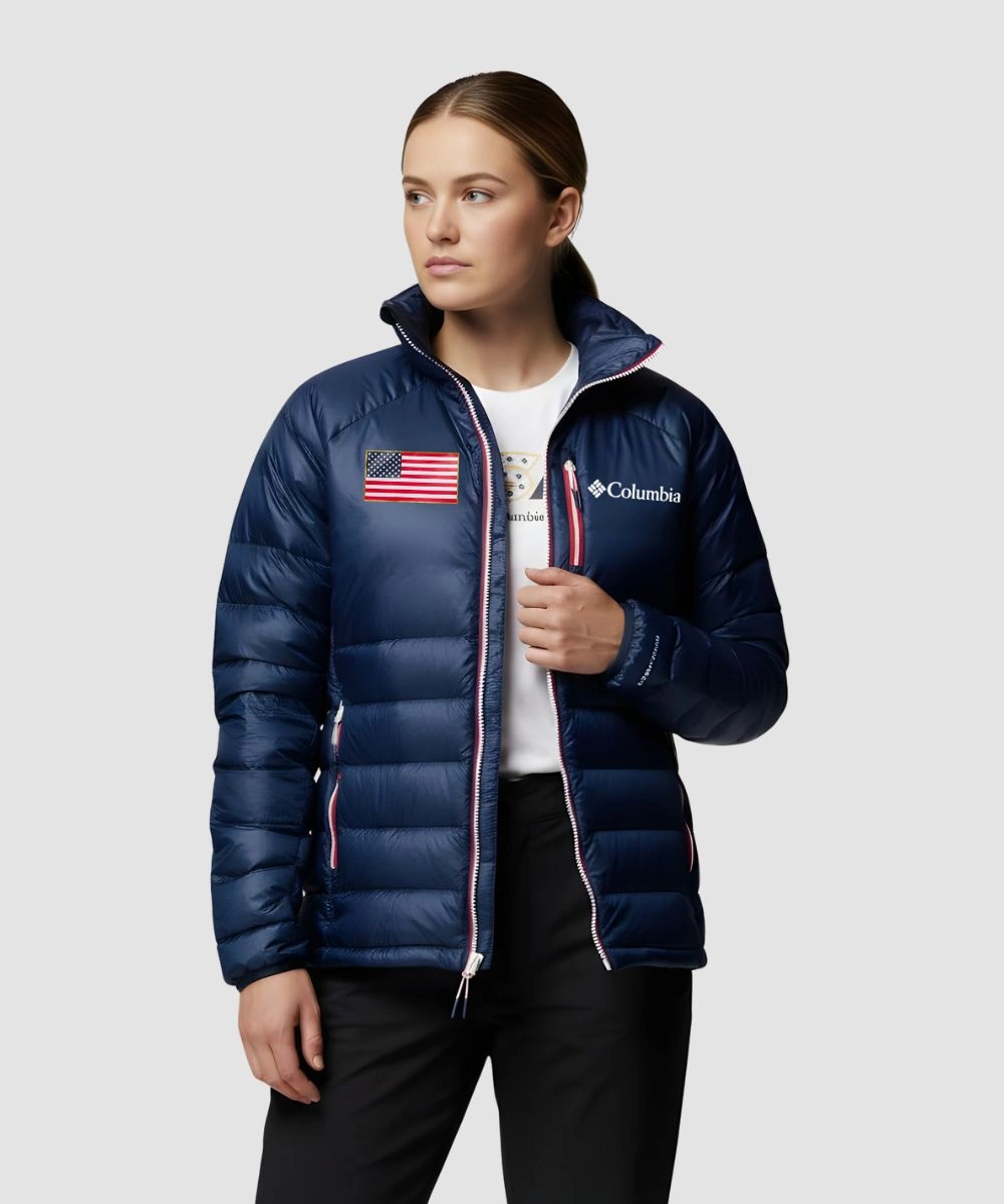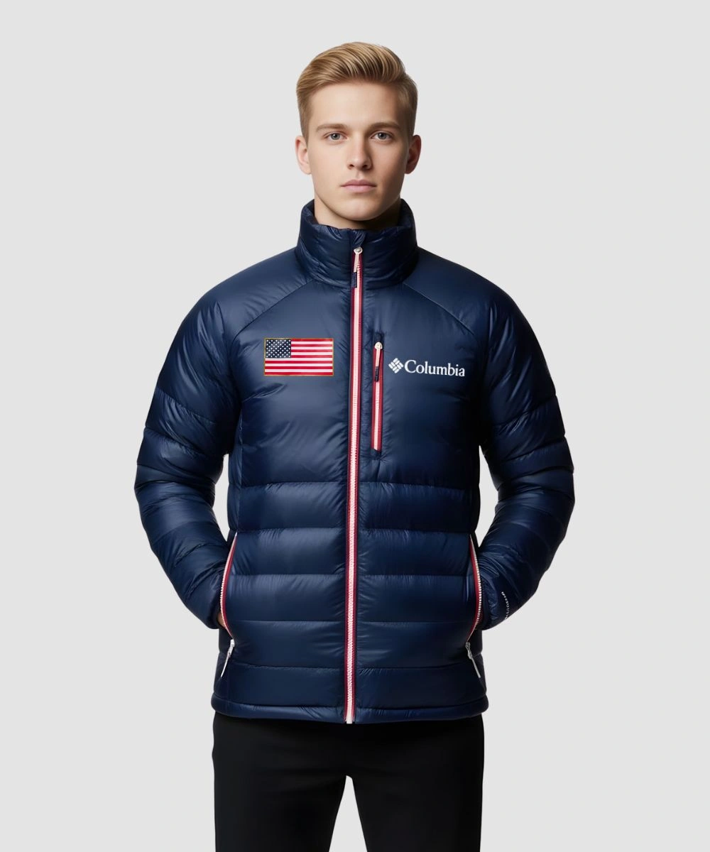 Shop Columbia Milano Cortina 2026 Winter Olympics Team USA Down Navy Blue Puffer Jacket For Men & Women