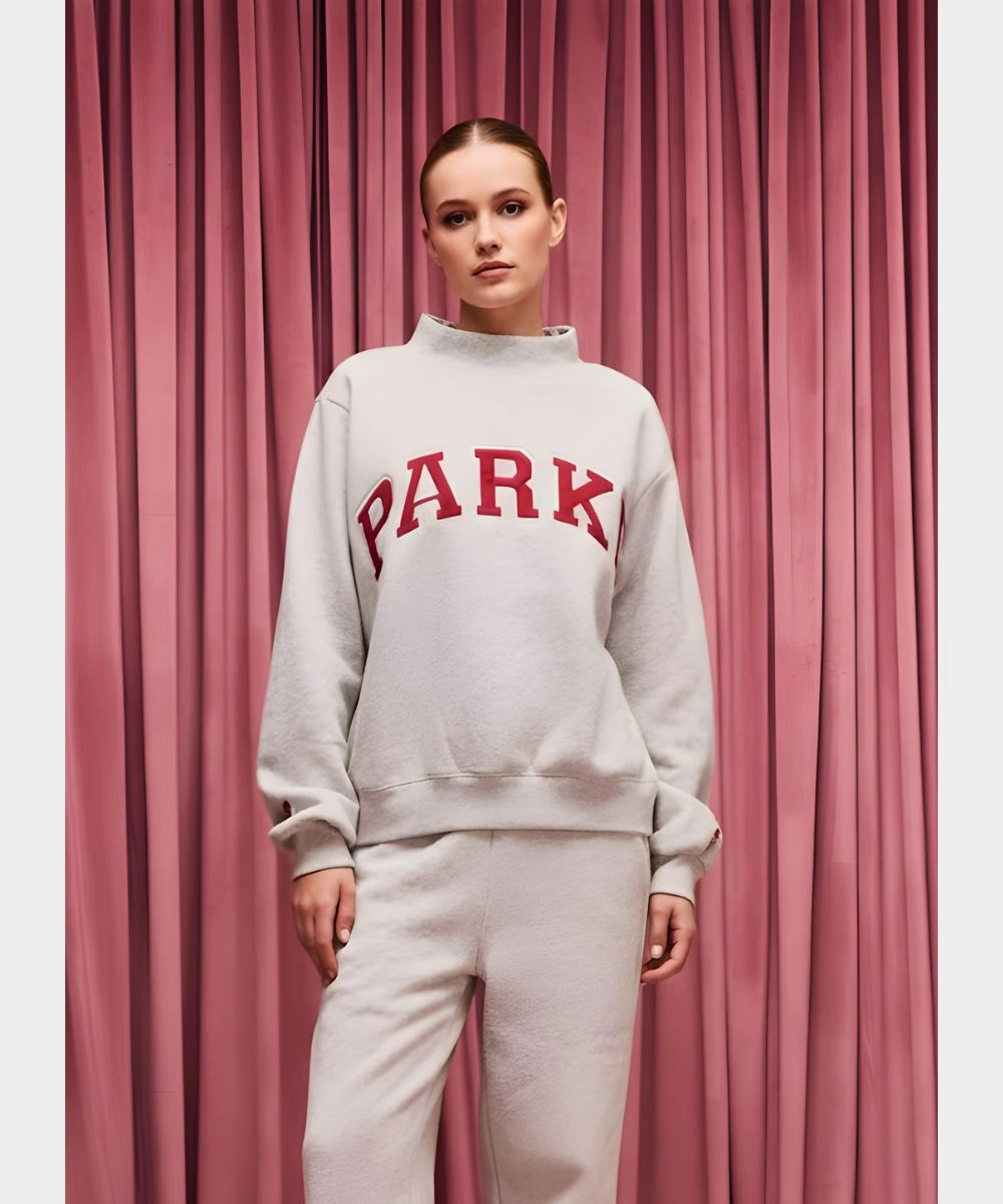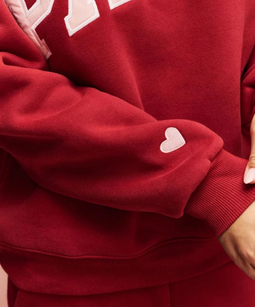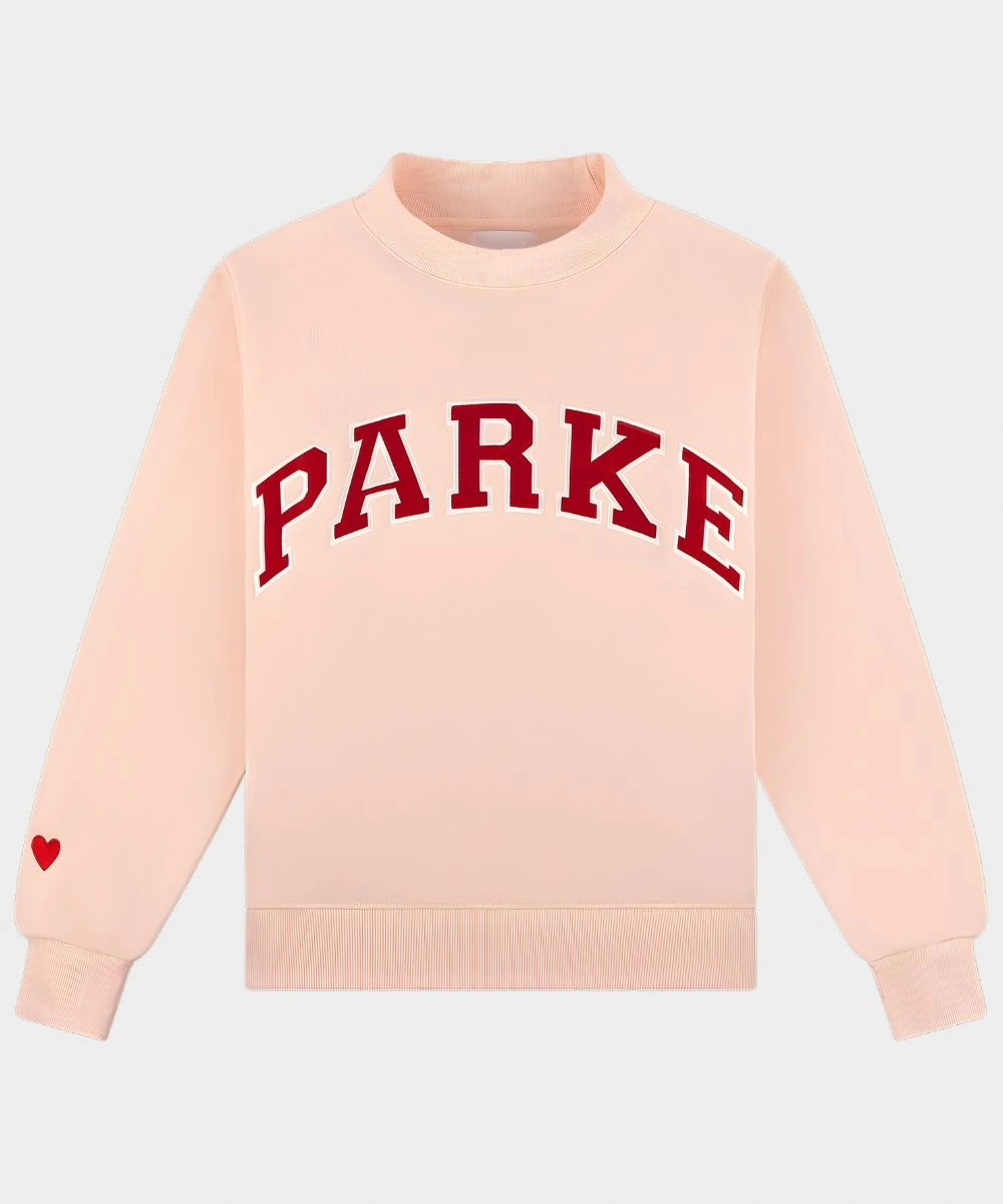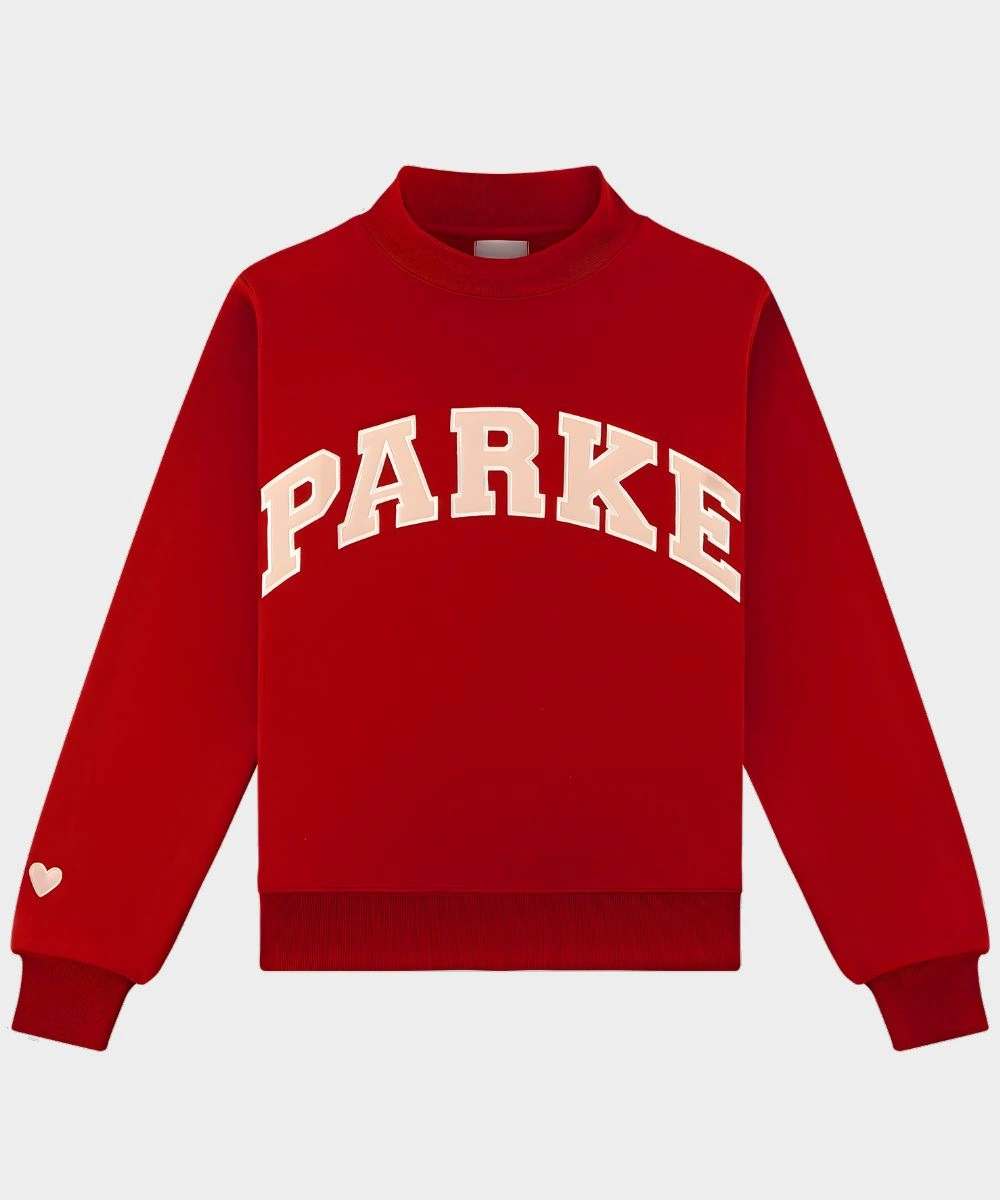 Invoke the charm of seasonal street style with a cozy fusion of athletic heritage in this Parke Valentine’s Varsity Mockneck Fleece Sweatshirt. Constructed from ultra-soft fleece for warmth and structured drape. It is defined by bold screen-printed “Parke’ typography that adds a layer of authenticity. The heavyweight fleece is tailored with a classic varsity aesthetic with a contemporary and feminine silhouette. It is available in premium Valentine’s theme shades that highlight a striking red with dark pink and light pink shades.