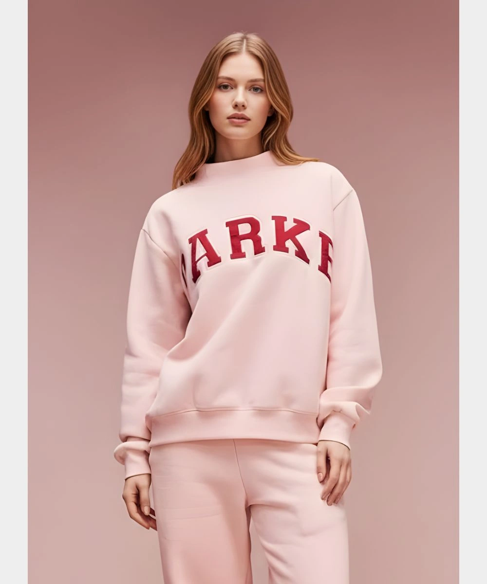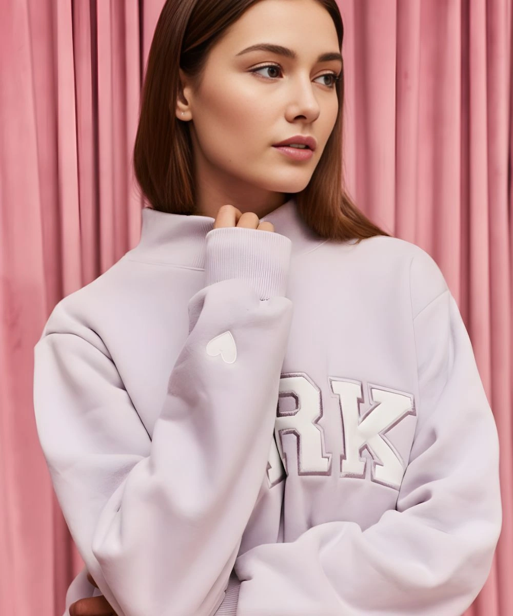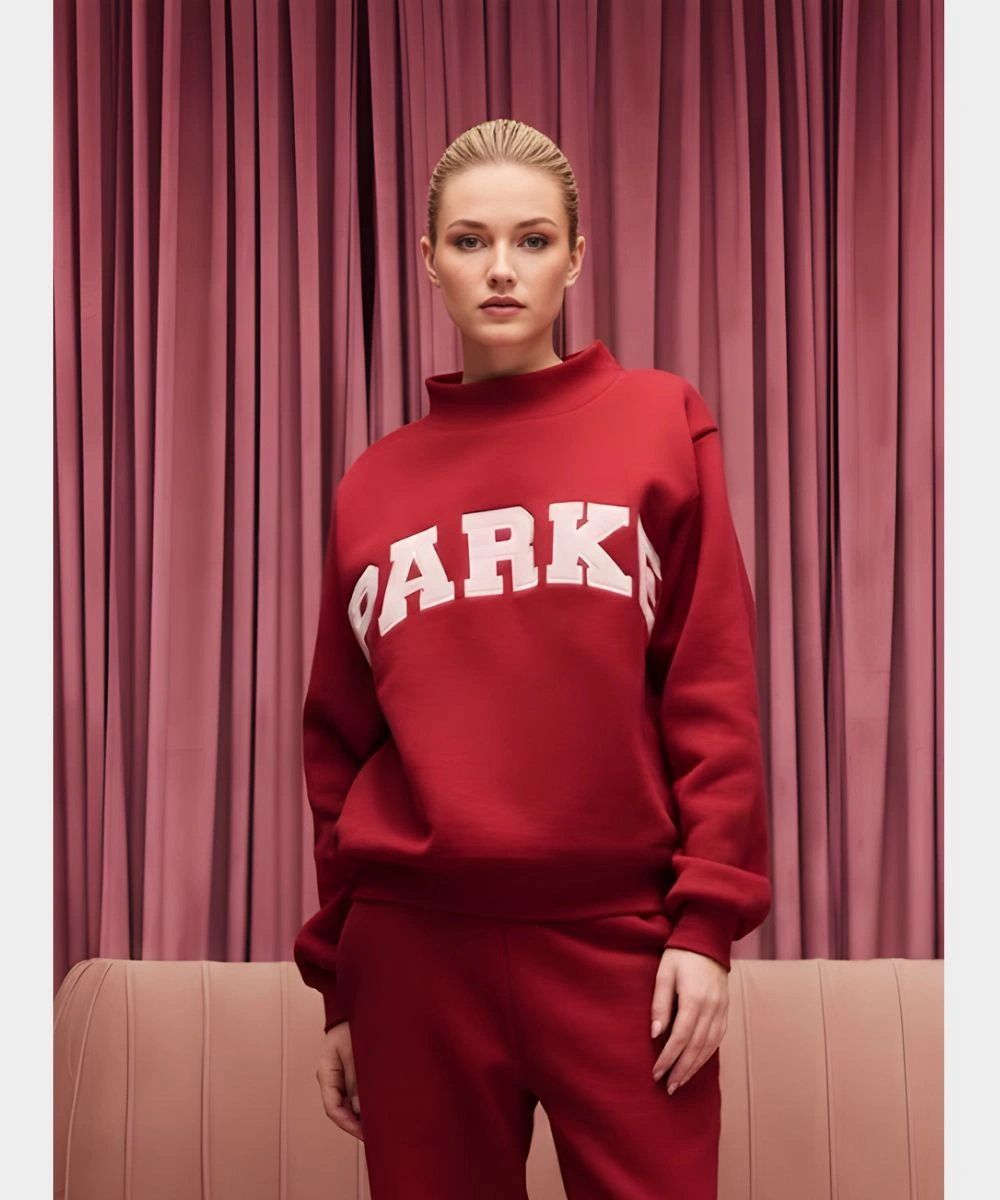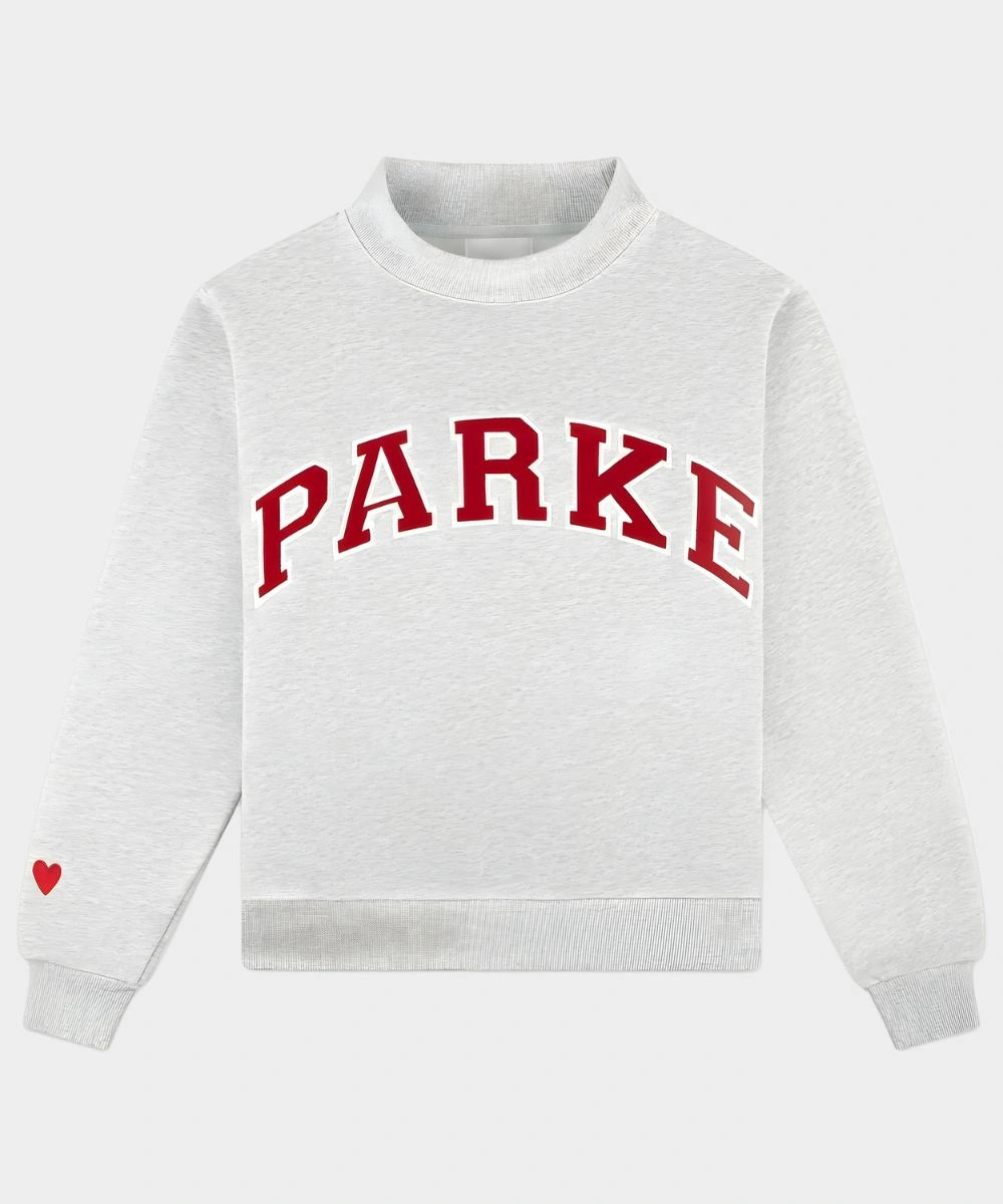Invoke the charm of seasonal street style with a cozy fusion of athletic heritage in this Parke Valentine’s Varsity Mockneck Fleece Sweatshirt. Constructed from ultra-soft fleece for warmth and structured drape. It is defined by bold screen-printed “Parke’ typography that adds a layer of authenticity. The heavyweight fleece is tailored with a classic varsity aesthetic with a contemporary and feminine silhouette. It is available in premium Valentine’s theme shades that highlight a striking red with dark pink and light pink shades.