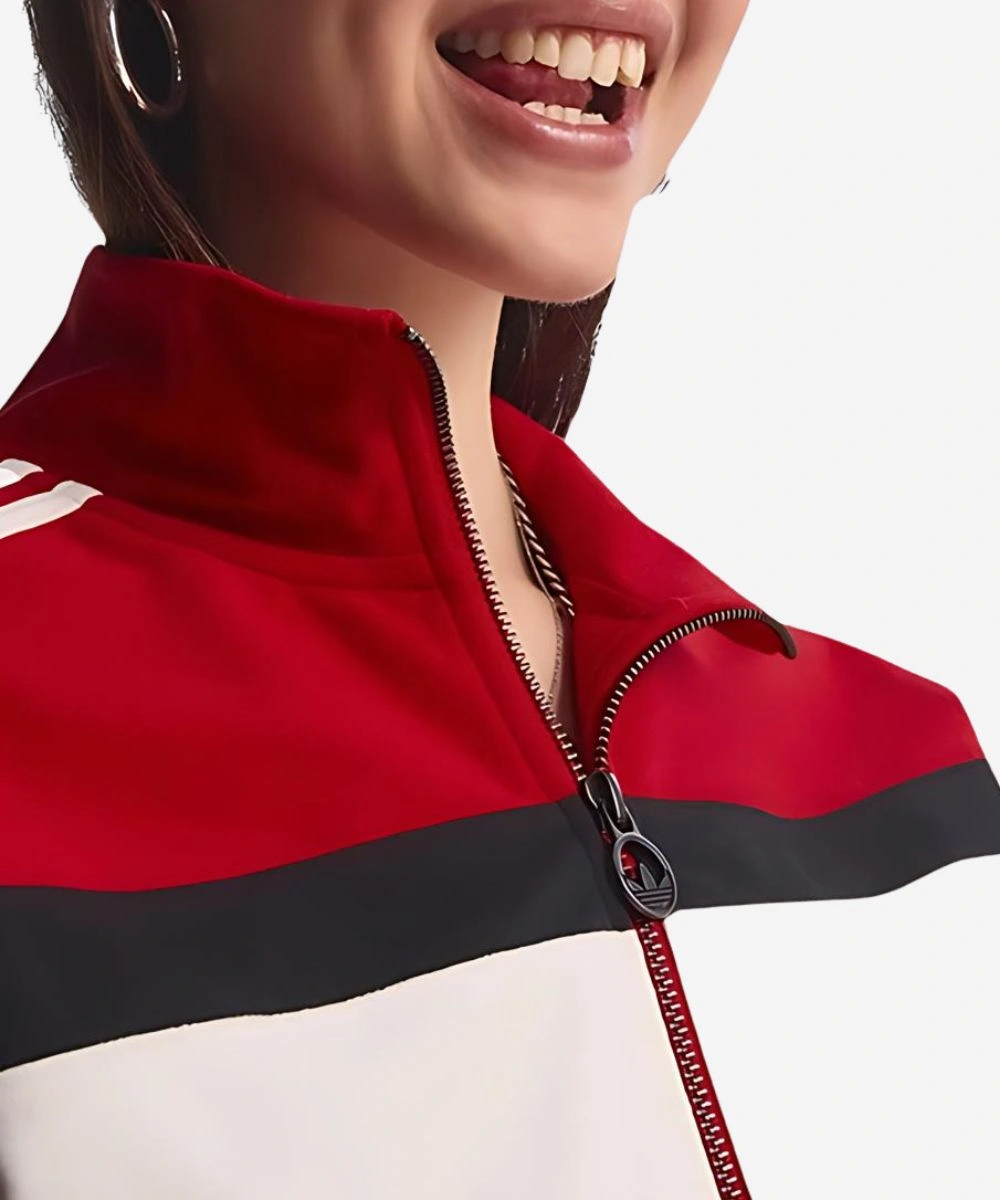The adidas Blocking Crop Jacket blends athletic energy with a flattering cropped cut to make your wardrobe pop. Constructed from quality fleece and red and black color block themes, this jacket delivers a standout style. It features an adidas signature logo at the chest and three stripe design running down vertically from each arm. Shop Adidas Blocking Cropped Track Jacket For Women’s for a confident, athletic-chic aesthetic. It features a classic stand-up collar and front zip for both warmth and modern minimalism. The red, white and black design creates a visual appeal and feels both sporty yet refined.