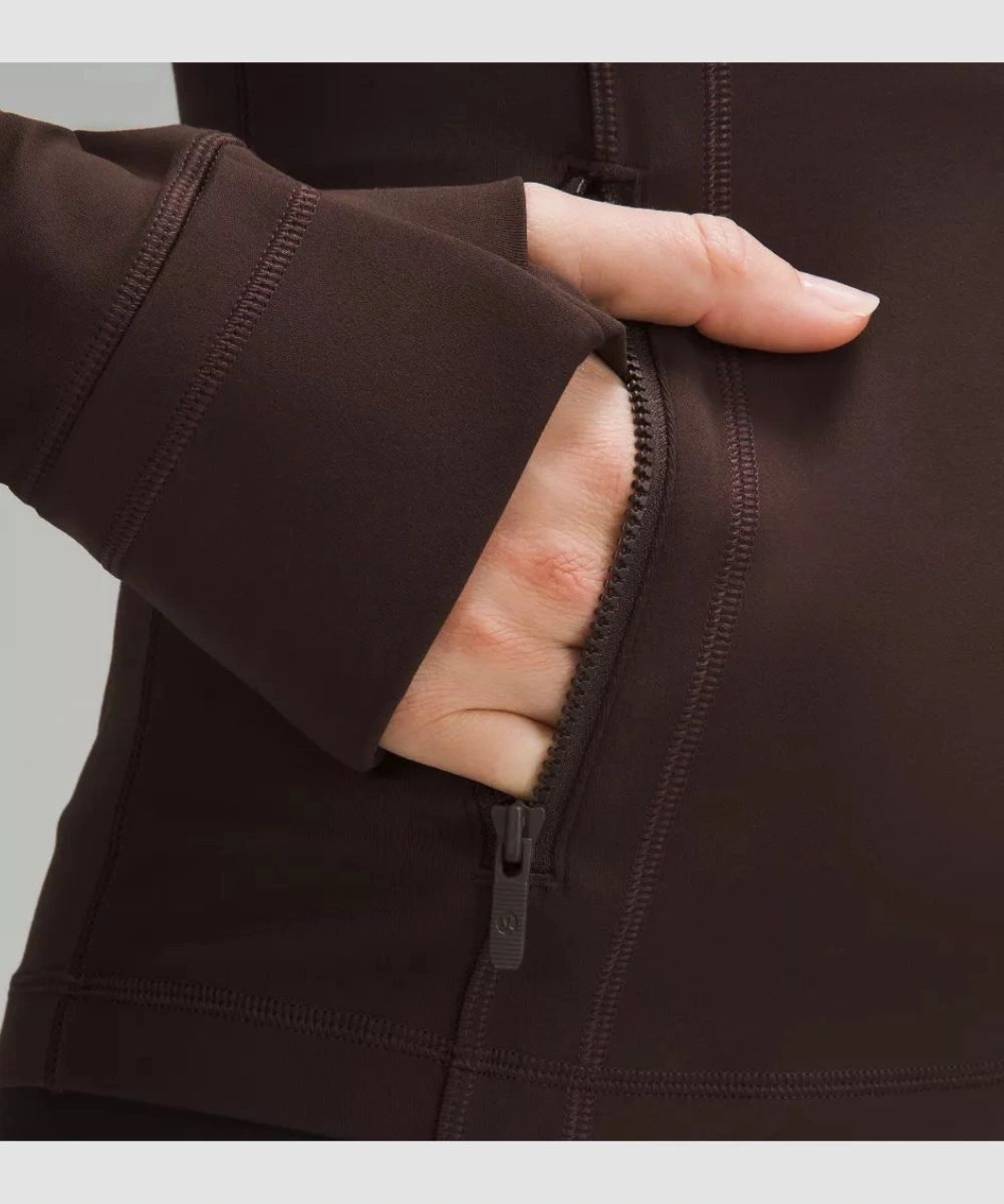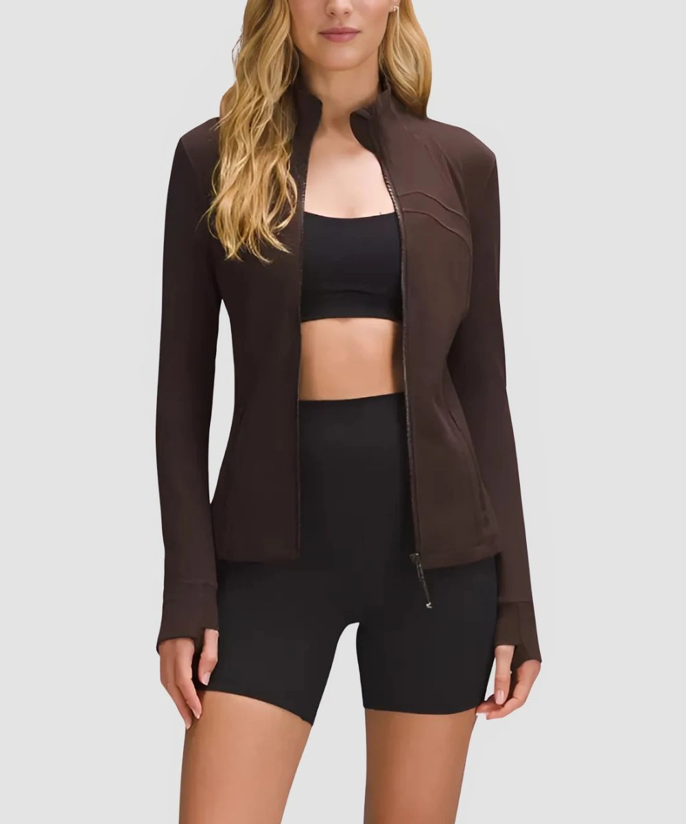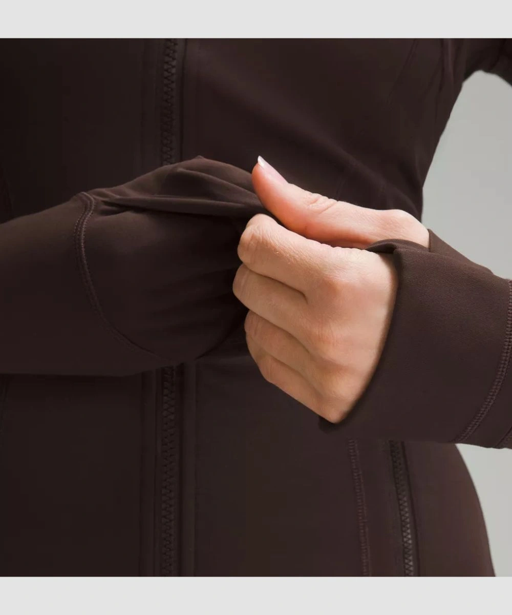 Shop Women’s Lululemon Espresso Define Jacket For Sale for a snuggle piece that is perfect for anyone seeking both versatility and function. The long fitted full-length sleeves feature thumbholes for added warmth and to block the chill. It is a light, functional layer that suits any wardrobe. The tonal seams define the upper body and add a stylish detail. It also has two side zipper pockets for extra essential safety.