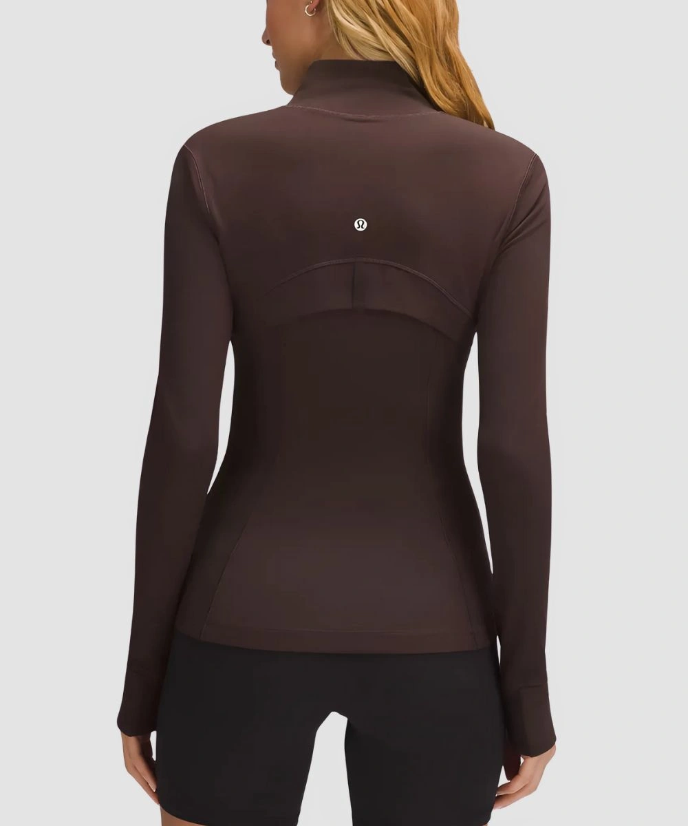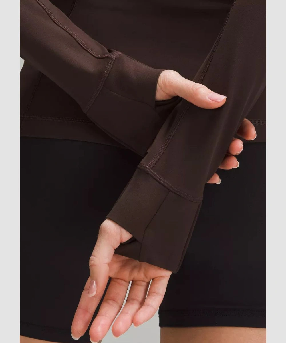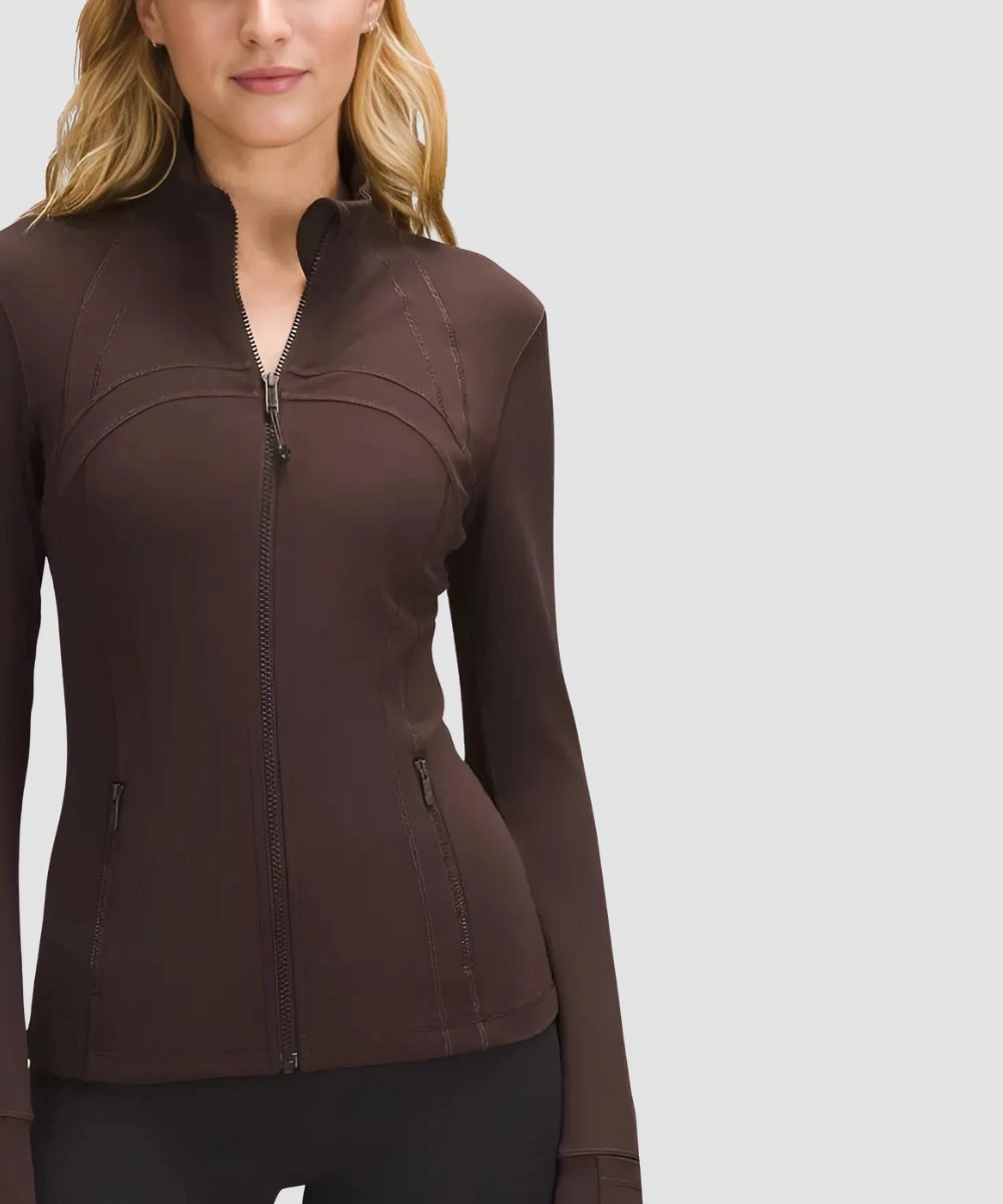 Shop Women’s Lululemon Espresso Define Jacket For Sale for a snuggle piece that is perfect for anyone seeking both versatility and function. The long fitted full-length sleeves feature thumbholes for added warmth and to block the chill. It is a light, functional layer that suits any wardrobe. The tonal seams define the upper body and add a stylish detail. It also has two side zipper pockets for extra essential safety.