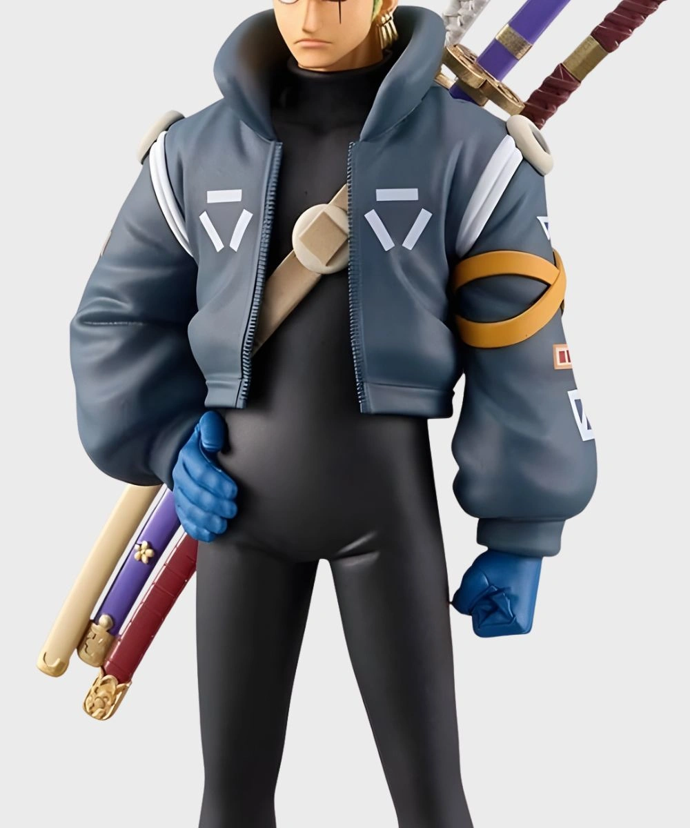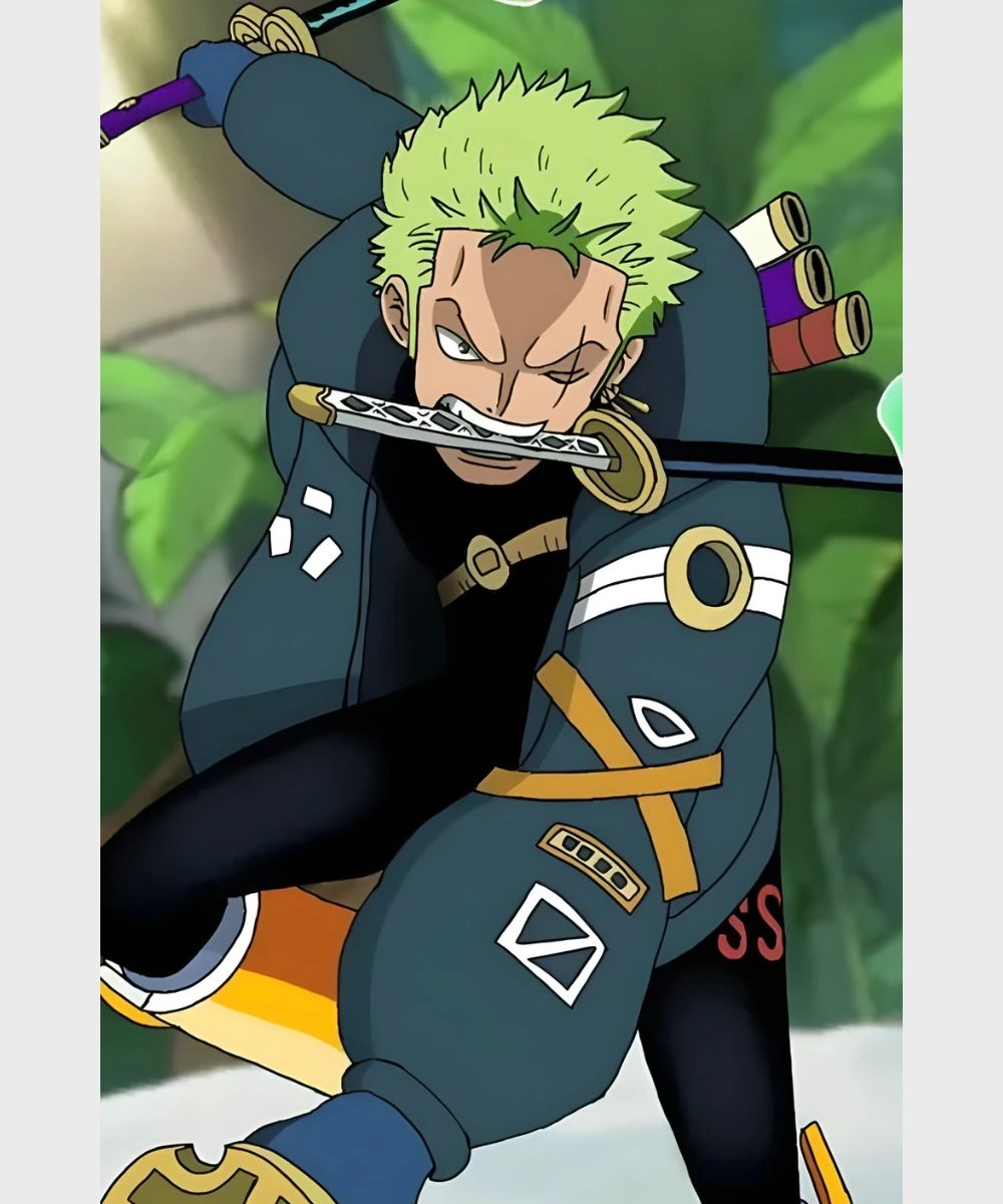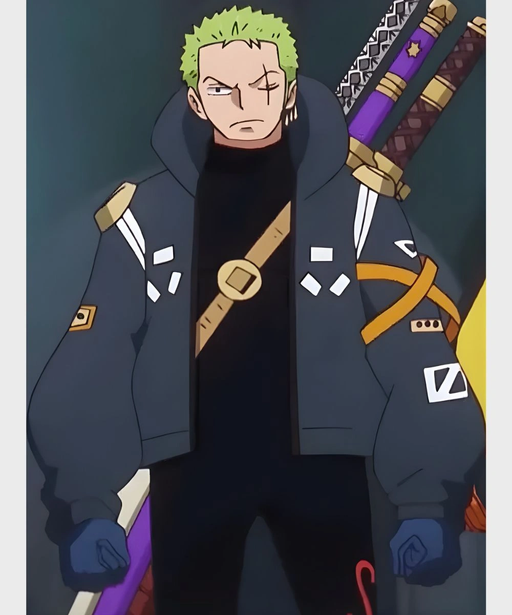 Redefine your wardrobe with bold energy and step out with confidence. This Blue Zoro Egghead Jacket is designed sleek with an anime inspired silhouette. It has a premium fabric and vibrant details that give a daring spirit vibe. The cropped silhouette has oversized full length sleeves that make it easy to throw on or layer under. Smooth fabric offers breathability and just the right balance of comfort. A standout feature of this Zoro Egghead Jacket is its high-rise stand collar that frames the neck and offers coverage.Â
